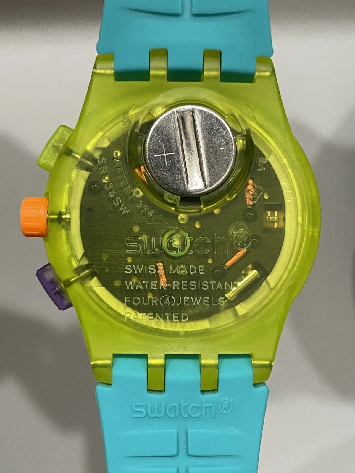 Otro, de hace más de 30 años, que tenía desde hace más de 25 las correas rotas y sin pila. Ayer, visita a Swatch, 15 leuritos y como nuevo 😊