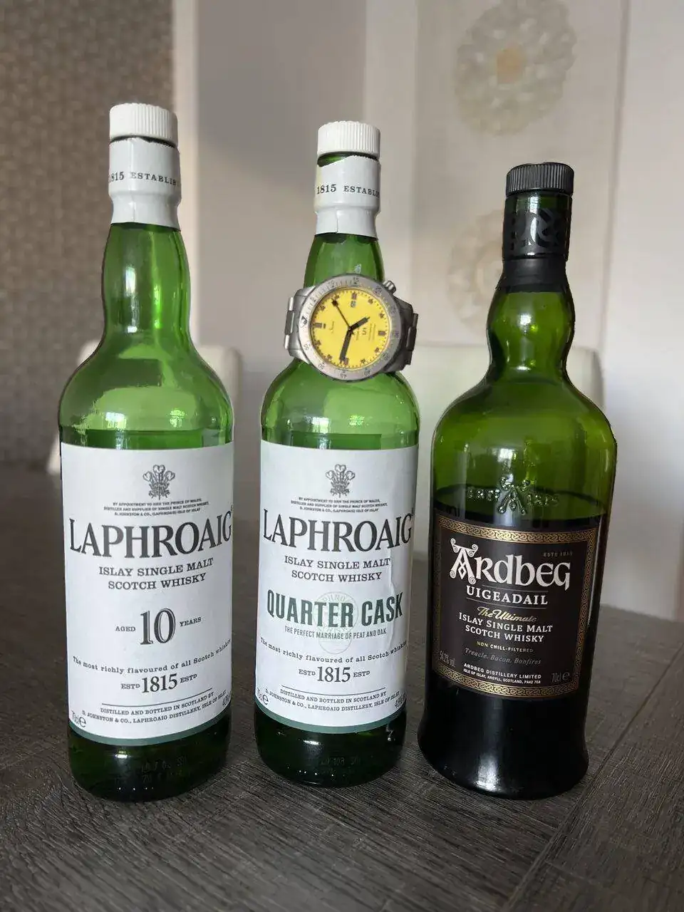 Ese amarillo se deja ver muy poco por aquí compañero, a ver si nos lo enseñas un poco más... El Laphroig 10 está muy bien, los otros dos no los he probado.