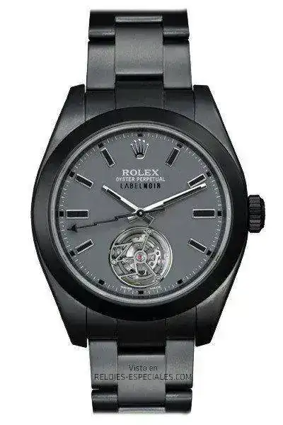 Modelo base en acero, Milgauss, bisel totalmente de acero (no cerámico). En el calibre Rolex referencia 3131 se han eliminado 51 componentes, se han modificado 2 y se han agregado 94. Se ha rebajado la frecuencia de 28.000 alternancias por hora (4 Hertzios) a 21,600, 3 Hertzios. Se ha conservado el grosor de la caja, incluido la esfera y agujas. El tourbillon volante está instalado sobre un rodamiento de bolas y completa un giro en 1 minuto.
