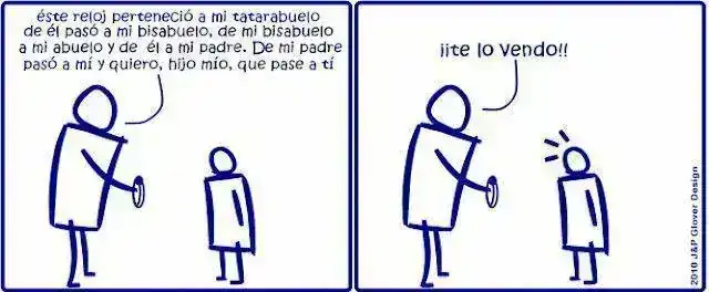 te lo vendo!!!! creo que a mi padre poco le falto para decirme eso con tal de no darme el reloj de mi abuelo , excelente viñeta muchas gracias me has hecho reir un monton