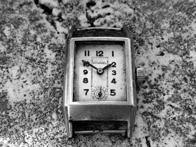 Una buena pista es que el Sr Carlos Vendrell registro su marca Duward entre 1930-34 (para no entrar en contradicciones), y que en 1947 fue el primer registro de la heráldica, entonces las opciones de este reloj son varias: o es un “maridaje” o es art deco original o tardio.