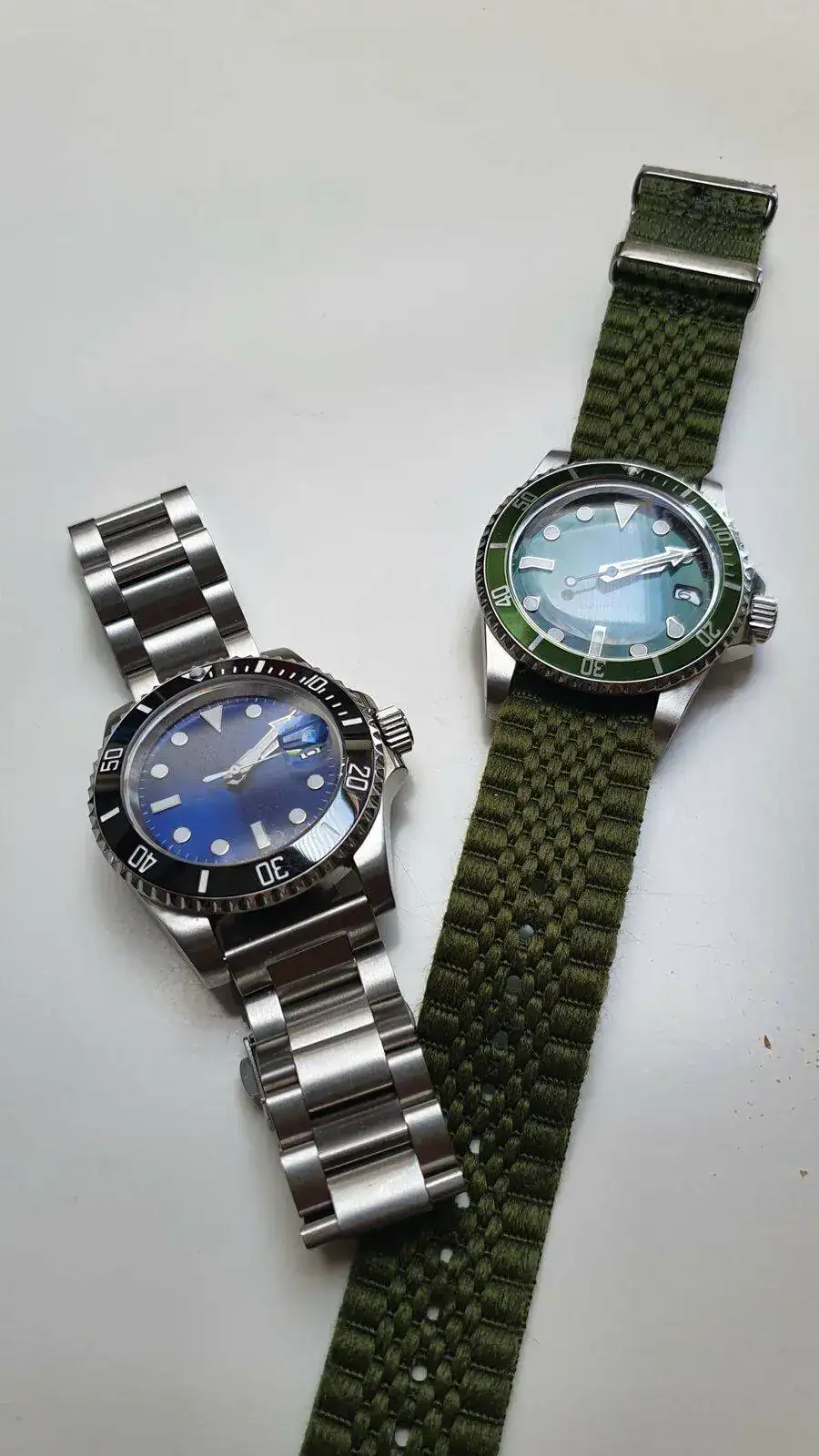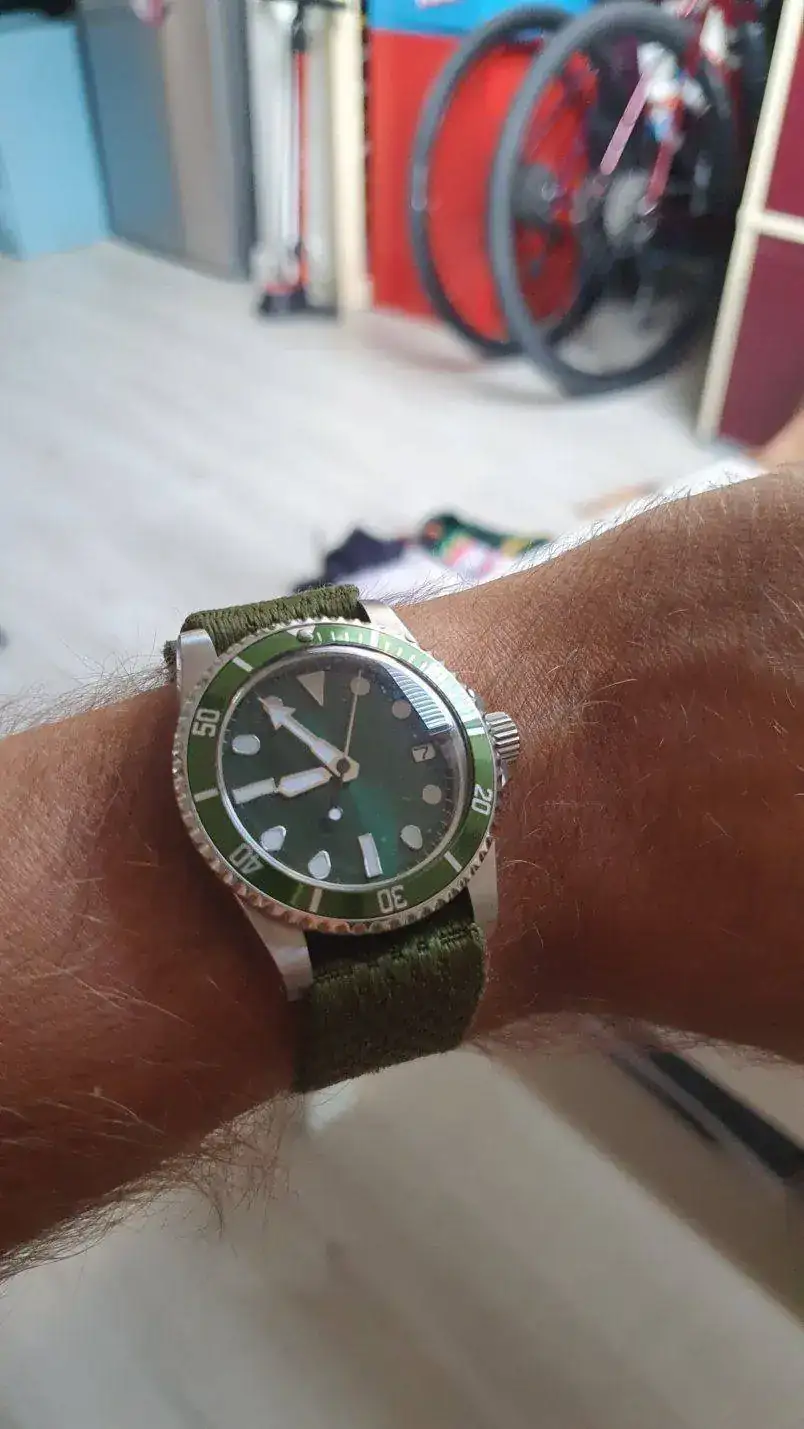A bote pronto el verde. Pero ya que estás...ves preparando uno como el verde pero en azul, bisel azul, correa igual azul y sin lupa y será mi preferido