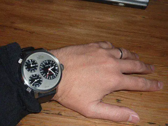 Pero el reloj me parece enorme. En este post lo presentan con fotos para demostrar que queda bien en muñecas pequeñas y yo creo que demuestran lo contrario, que queda fatal, es demasiado grande para esta muñeca: https://www.watchuseek.com/threads/behold-glycine-airman-7-on-a-6-inch-wrist.122772/
