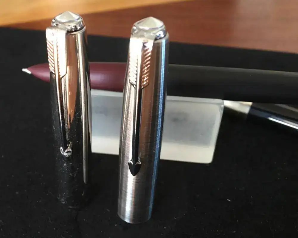 En este caso el problema es que un taco de garryflex cuesta 20€ y la Jinhao cuesta 3€, así que cambie el garryflex por un taco de lija de 0.75€ en el chino.El problema que le veo al lijado es mantener las rayas del cepillado paralelas, si se tuercen se nota que se ha hecho a mano y no acaba de gustarme el resultado final. Hay que tener mucha maña y con el estropajo es difícil conseguir un acabado profesional.
