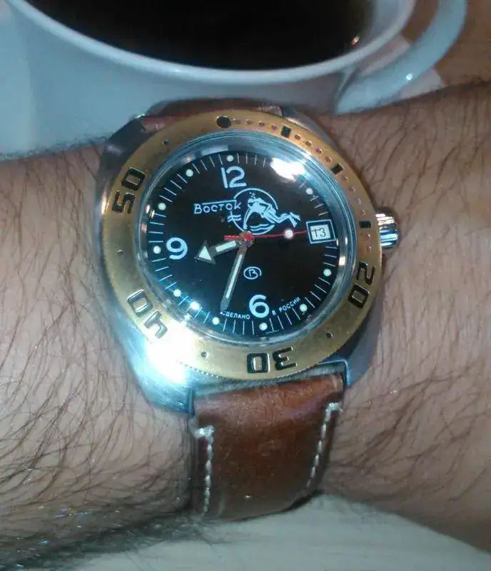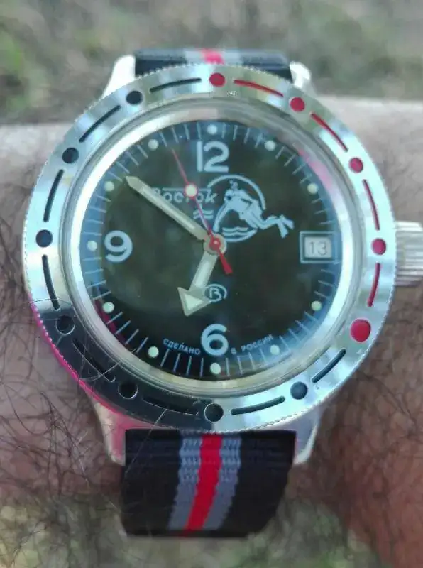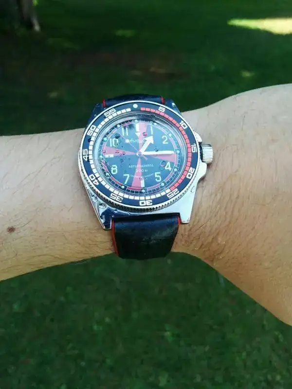 . Me gusta, un saludo.Un poco de mezcla, Amphibia 020 manual con 2414A propio de los Komandirskie, dial ruso de la Guardia Fronteriza y agujas a la remanguillé. Para que no me hiciera duelo, si me caía al Canal xD.