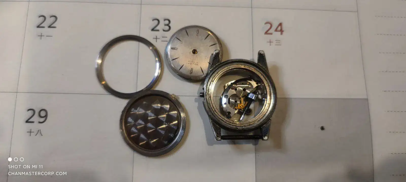 Lleva cristal mineral, con un aro que lo ajusta. La tapa trasera es como la de los amphibia y dentro lleva un 2416. La caja es de latón. Se lo compré a un compañero del foto.