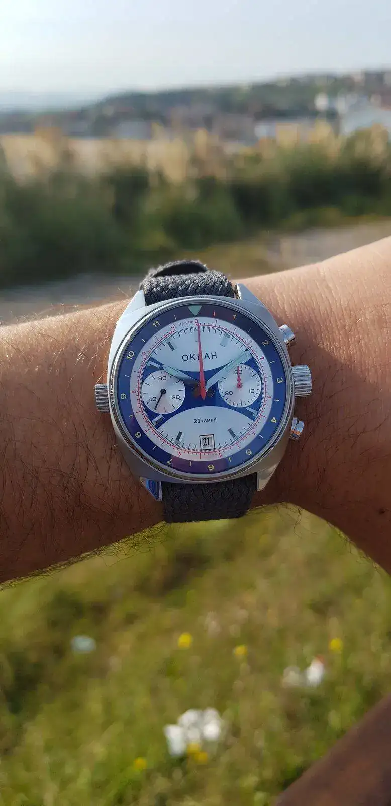 Cuánto le mide el asa de ancho?La semana pasada entró este Slava pepsi (2609HA) que a pesar del apellido cuarzo, es mecánico. Le estoy buscando brazalete,