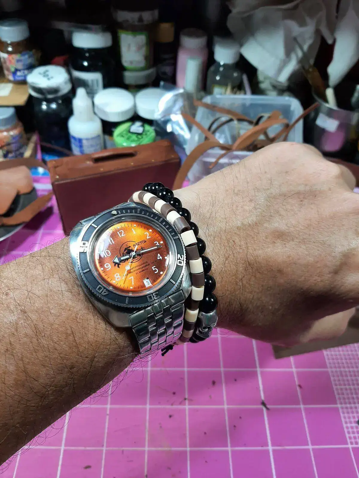 Gracias colega, me hacia falta un reloj naranja en mi caja, estuve barajando varios, incluso un Seiko 5, pero no me terminaban de llenar, y no queria un Heimdallr, cuando vi este ruso, fue instantáneo el flechazo, ademas fue mi primer Amphibia con datario, le he mantenido "rodando" desde que lo recibi y se ha vuelto uno de mis favoritos, con caucho, con acero,con tela, y proximamente con cuero, por cierto, ese Komandirskye con el latón expuesto que traes hoy, es precioso ¿ como despintaste el bisel ?.Esa esfera me hipnotiza. Preciosa!!!