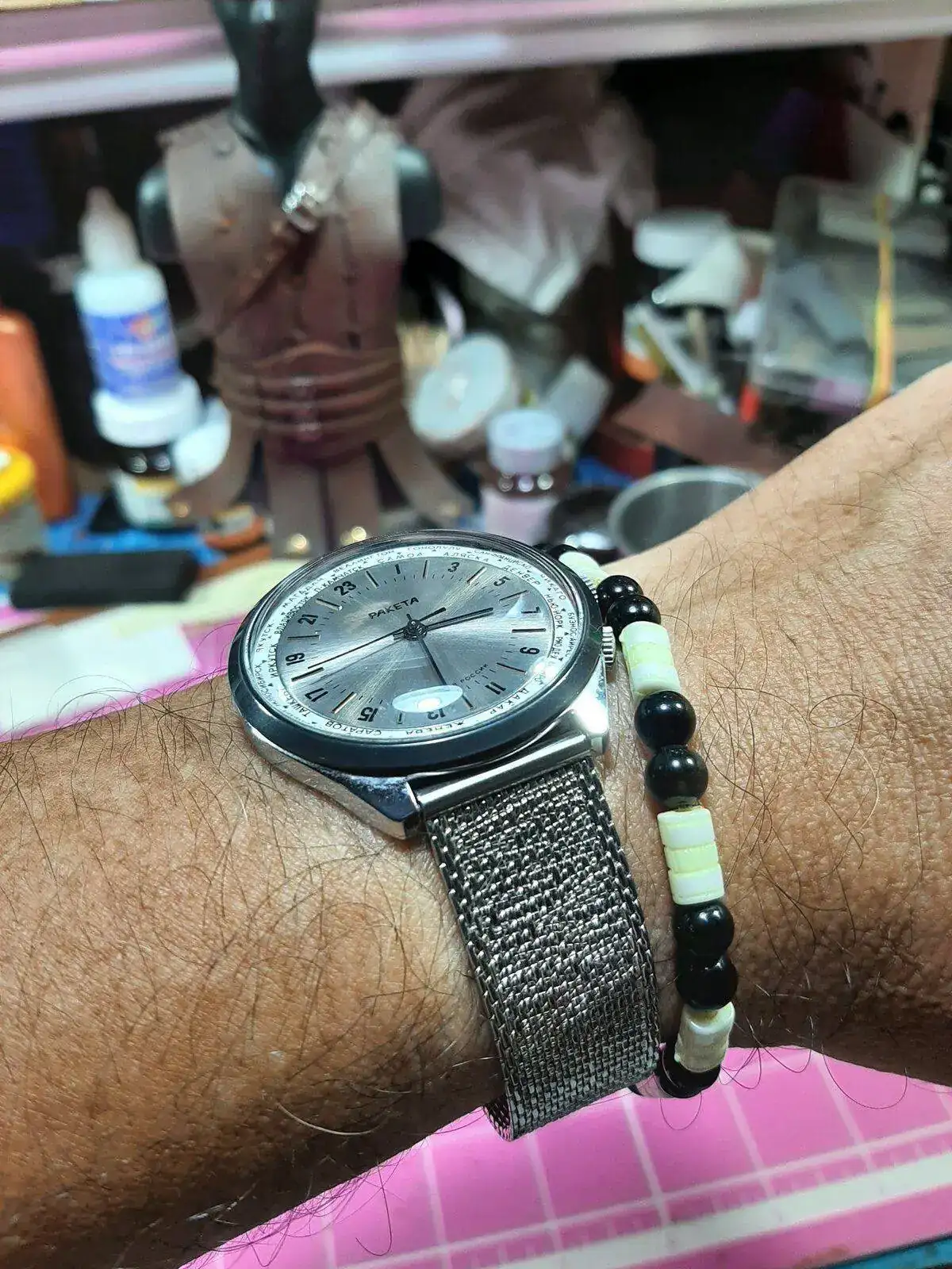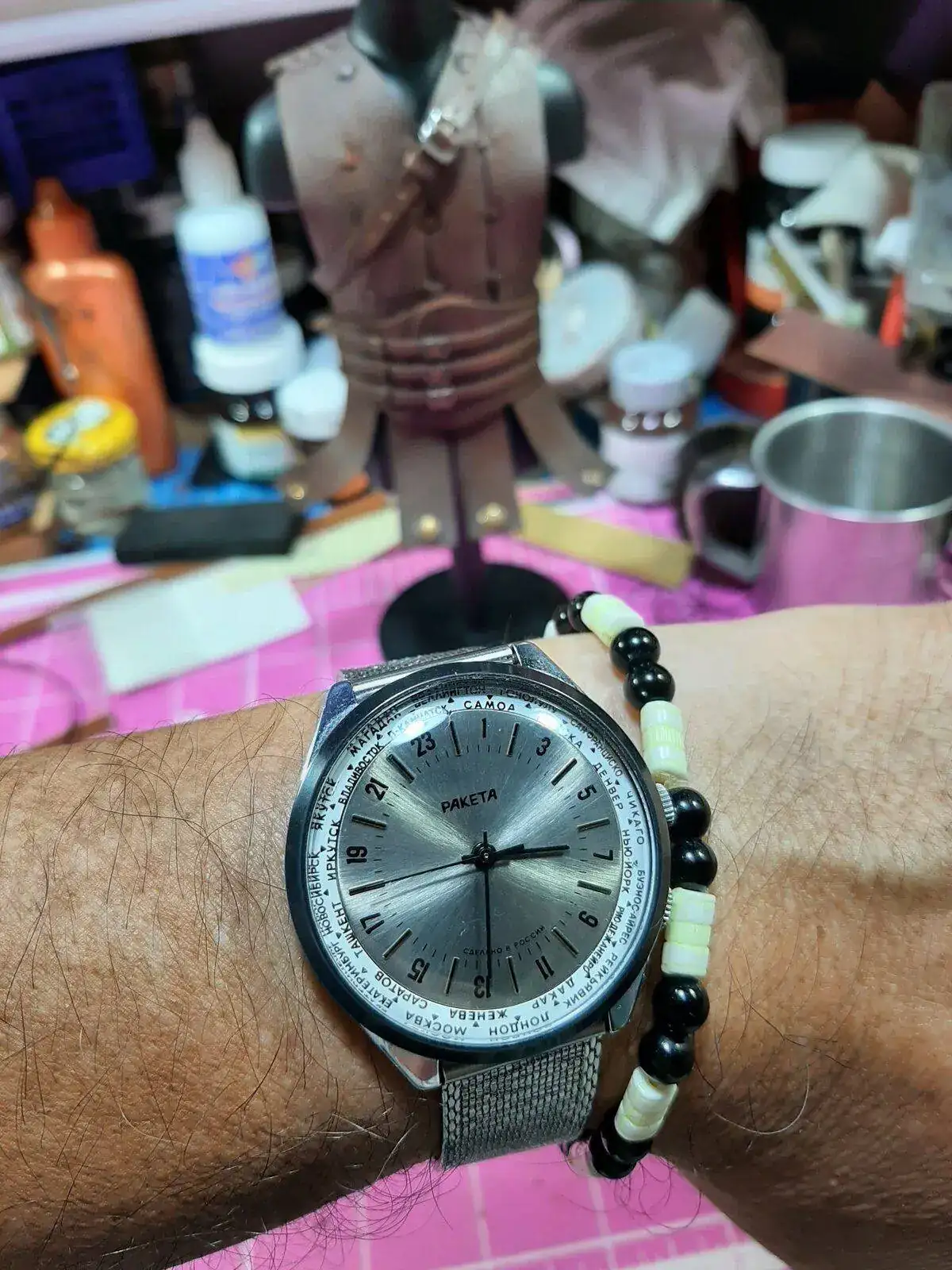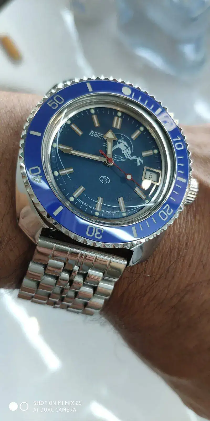 Que bonito ruso compañero, son relojes que siempre que los usamos nos sacan una sonrisa, disfrútalo por muchos años con salud, abrazo desde Mexico.Con este empezó mi locura por los relojes rusos. Ya hace muchos años que lo tengo y el trato duro que le he dado no se refleja en él, ya que increíblemente no tiene ni una marca en el plexi. Mar, montaña, trabajo (jardinería y forestal) y aún aguanta perfectamente el condenado. No lo he podido captar en la imagen, pero el díal es texturizado como el de los primeros Neptune. Ya casi no se ve el lumen, pero aún cambia la hora a las 00;h!! Evidentemente nunca haré un mod con este.