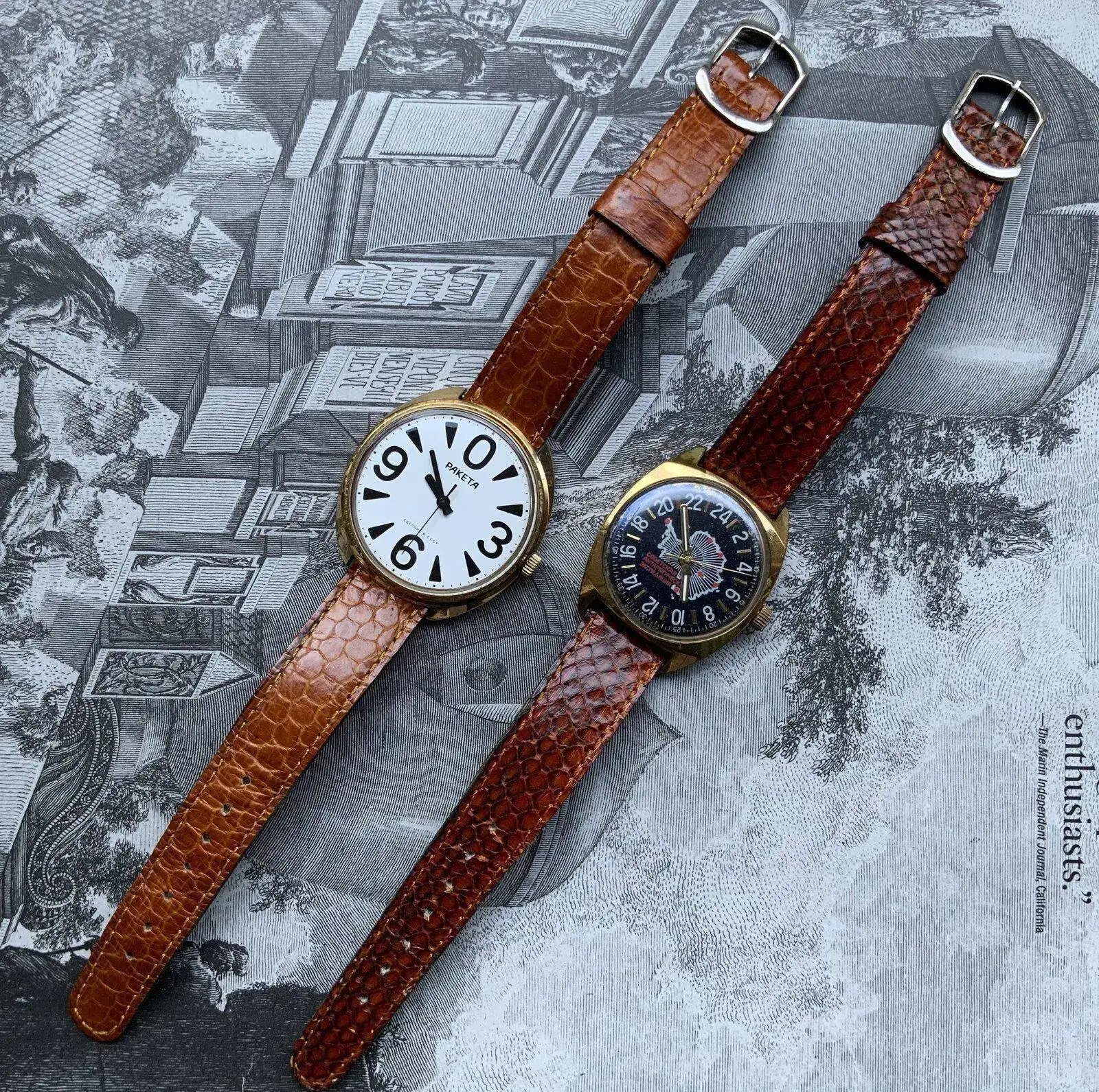 Cómo me gustan los raketa clásicos, me gusta hasta el sonido del mecanismo, esos dos que muestras son dos de mis objetos de deseo.Muchas gracias, compañero! Es una correa de lagarto, soviética de los años 70. Contemporánea del propio reloj. En su día compré estas dos juntas, en estado NOS. Aunque la del Antarctica ha envejecido bastante, desde entonces. Un saludo