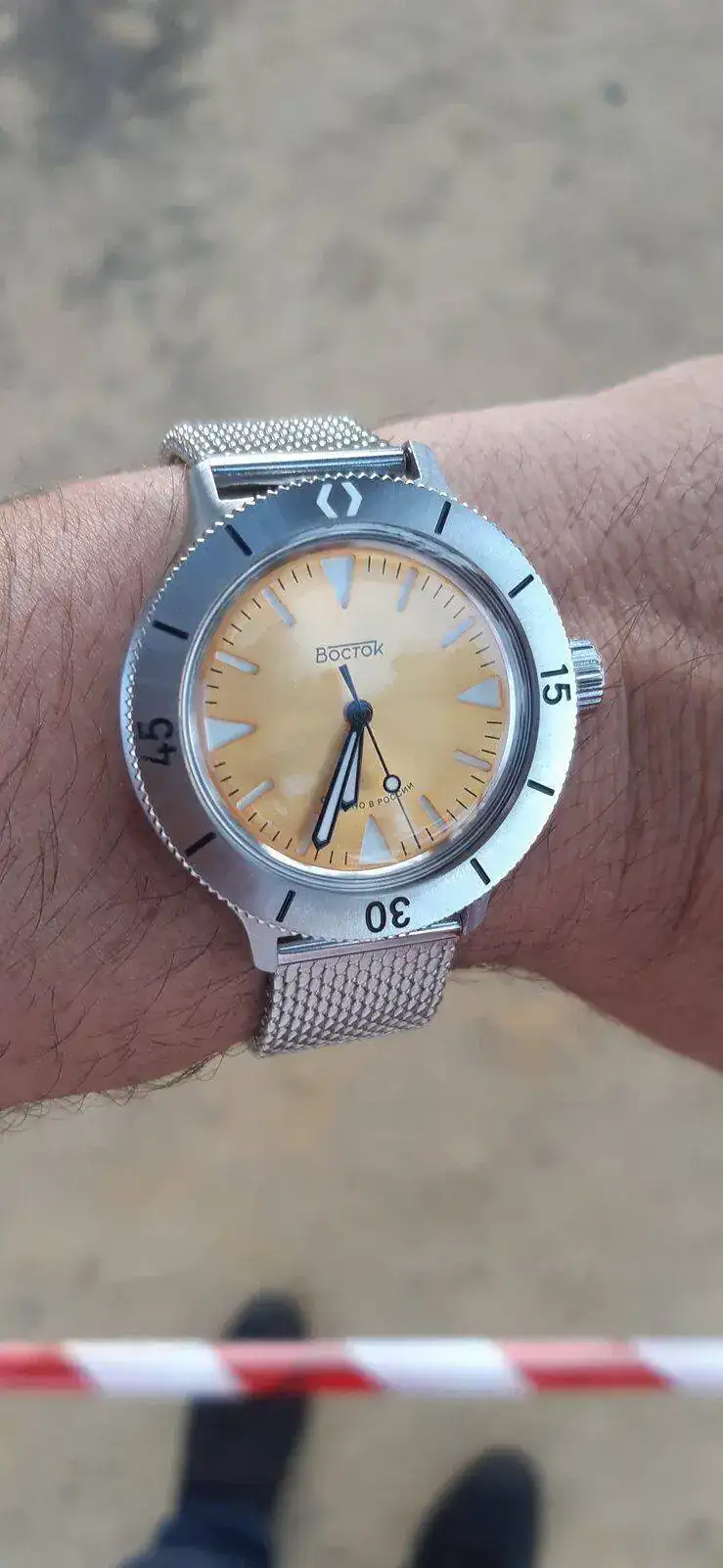 Muy bonito y esa milanesa le queda muy bien, a esa caja le puedes poner un brazalete metalico, tal y como lo hizo el compañero @byReapersBueno, dicho y hecho. Vengo del relojero con una milanesa para mi vostok huevo.