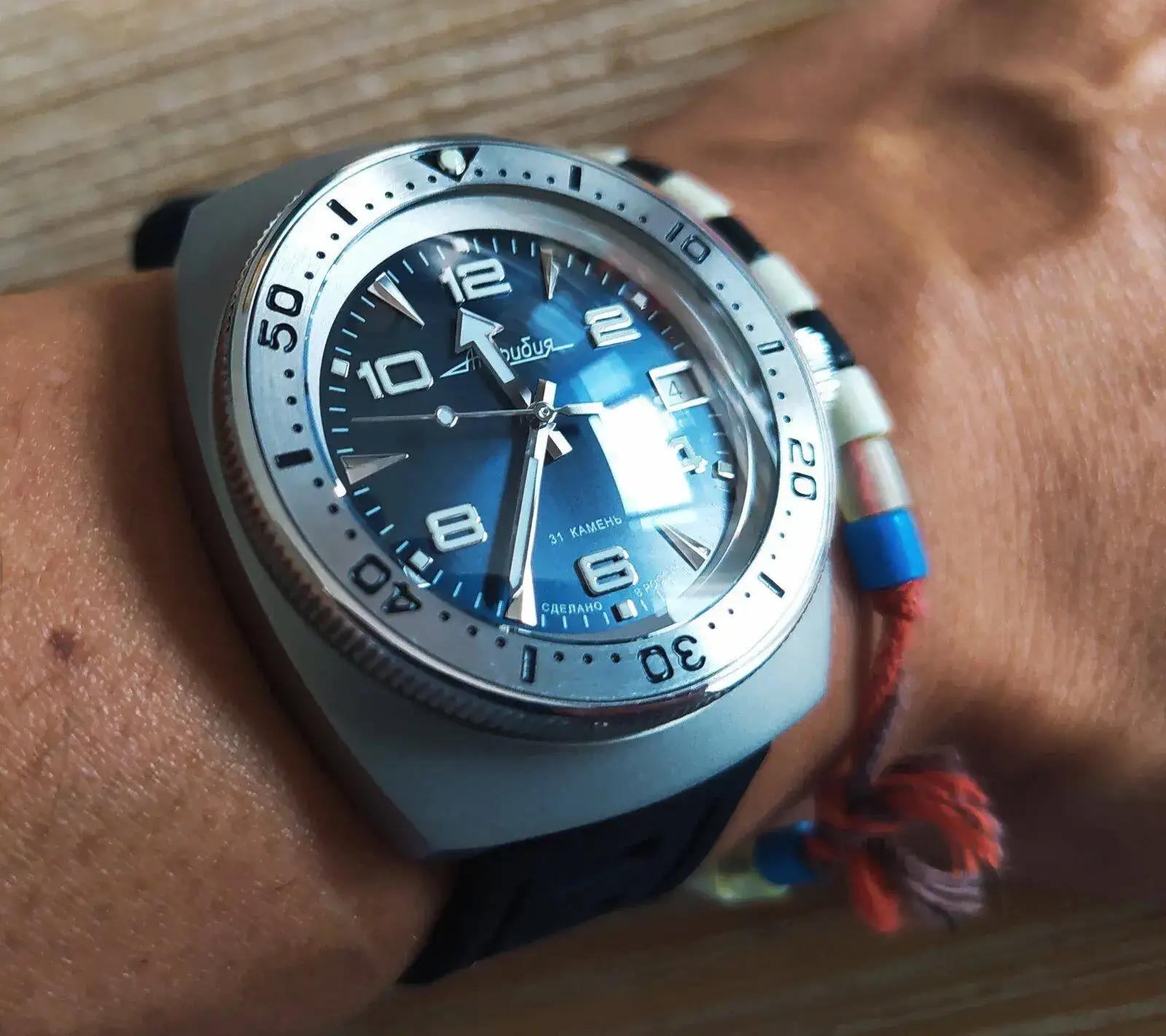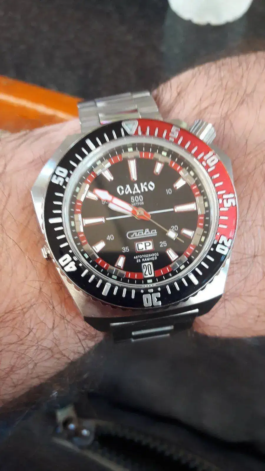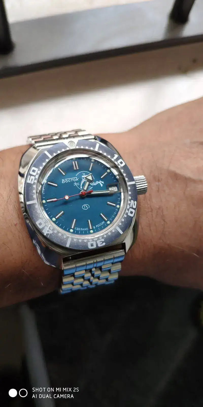 Ya de vuelta del relojero, ahora si, este pequeño, marcha como un campeon, le he puesto el brazalete "coffin link", de la epoca, que le queda perfecto en mi opinión.