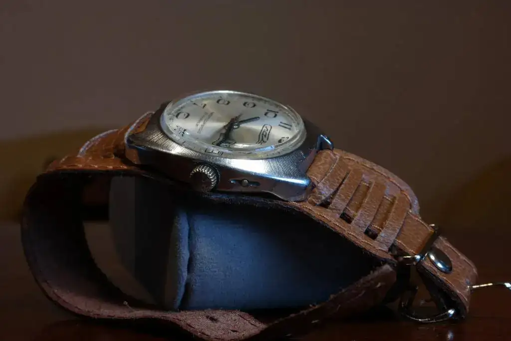 Hoy, tras una apresurada puesta a punto, este Generalskie con un raro bisel liso y movimiento automático.