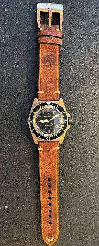 It's actually very good for the price. La hebilla es, por supuesto, de uno de los Vostok de bronce de 1967.Gracias compañero, tienes razon, a este reloj le va muy bien el cuero, y mi MDD ya está totalmente recuperada, hace un par de dias, se hizo un control y dio negativo, pero todavia la seguimos mimando en casa.La correa le sienta muy bien...
