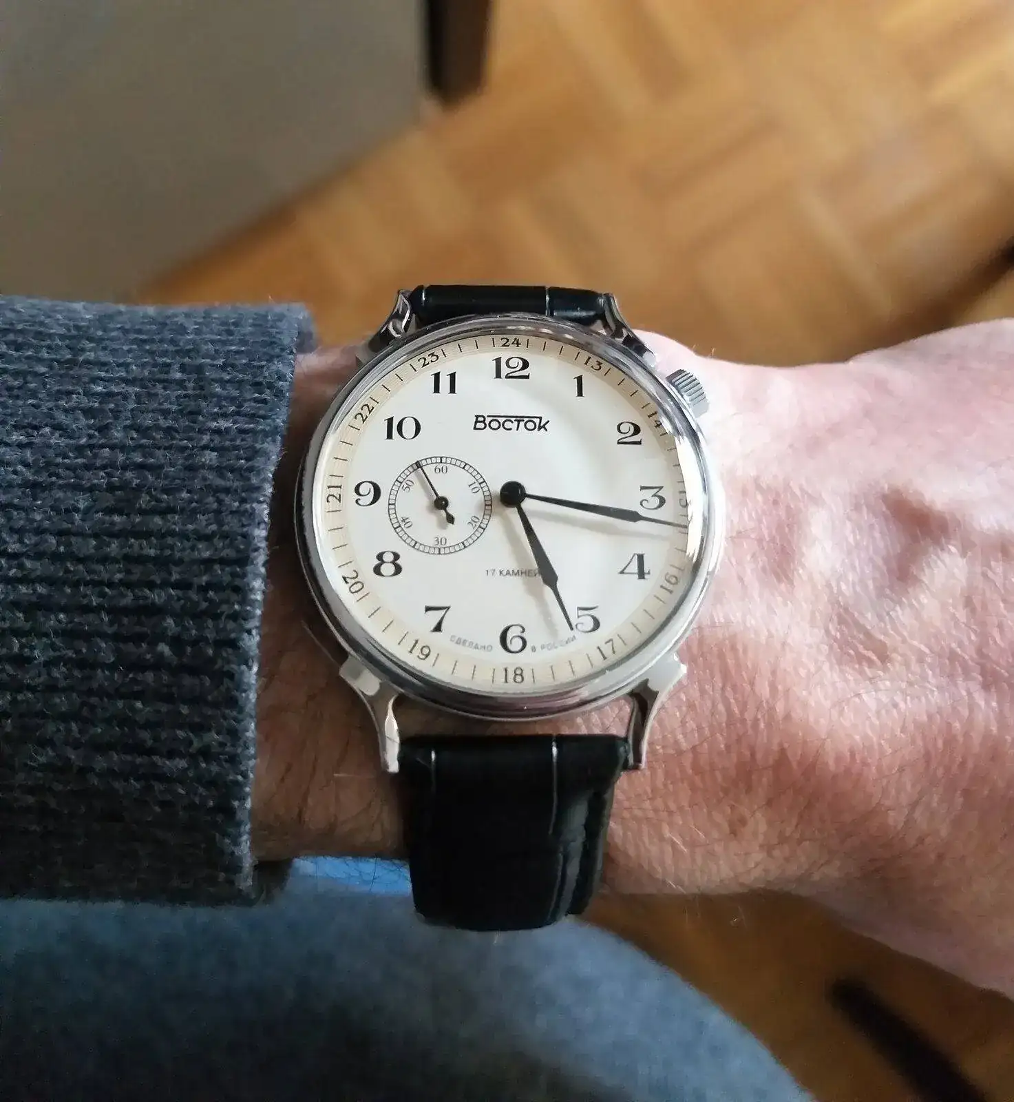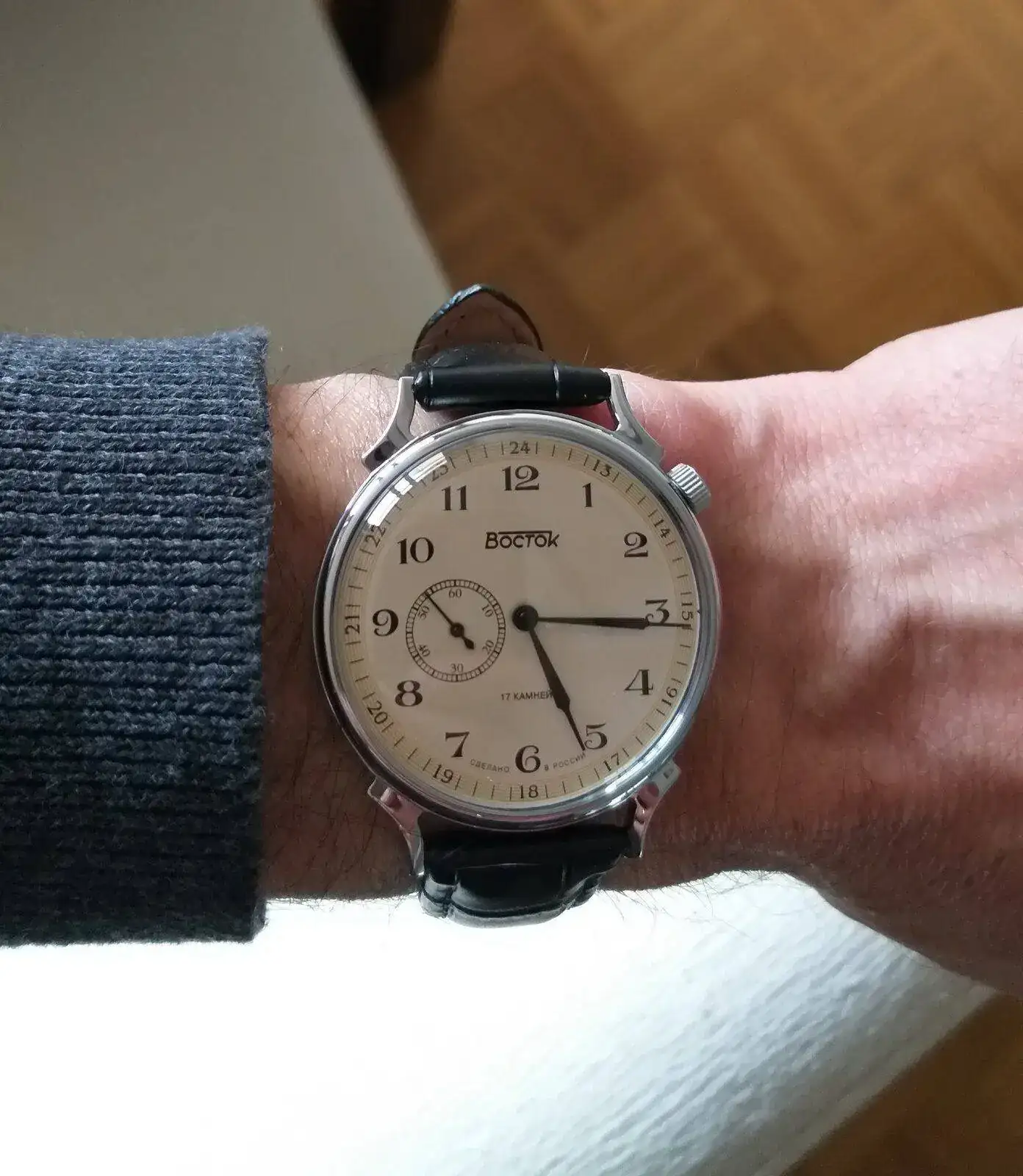 Precioso. Tan "old fashioned".Recién recogido, puesto en hora y a la muñeca:
