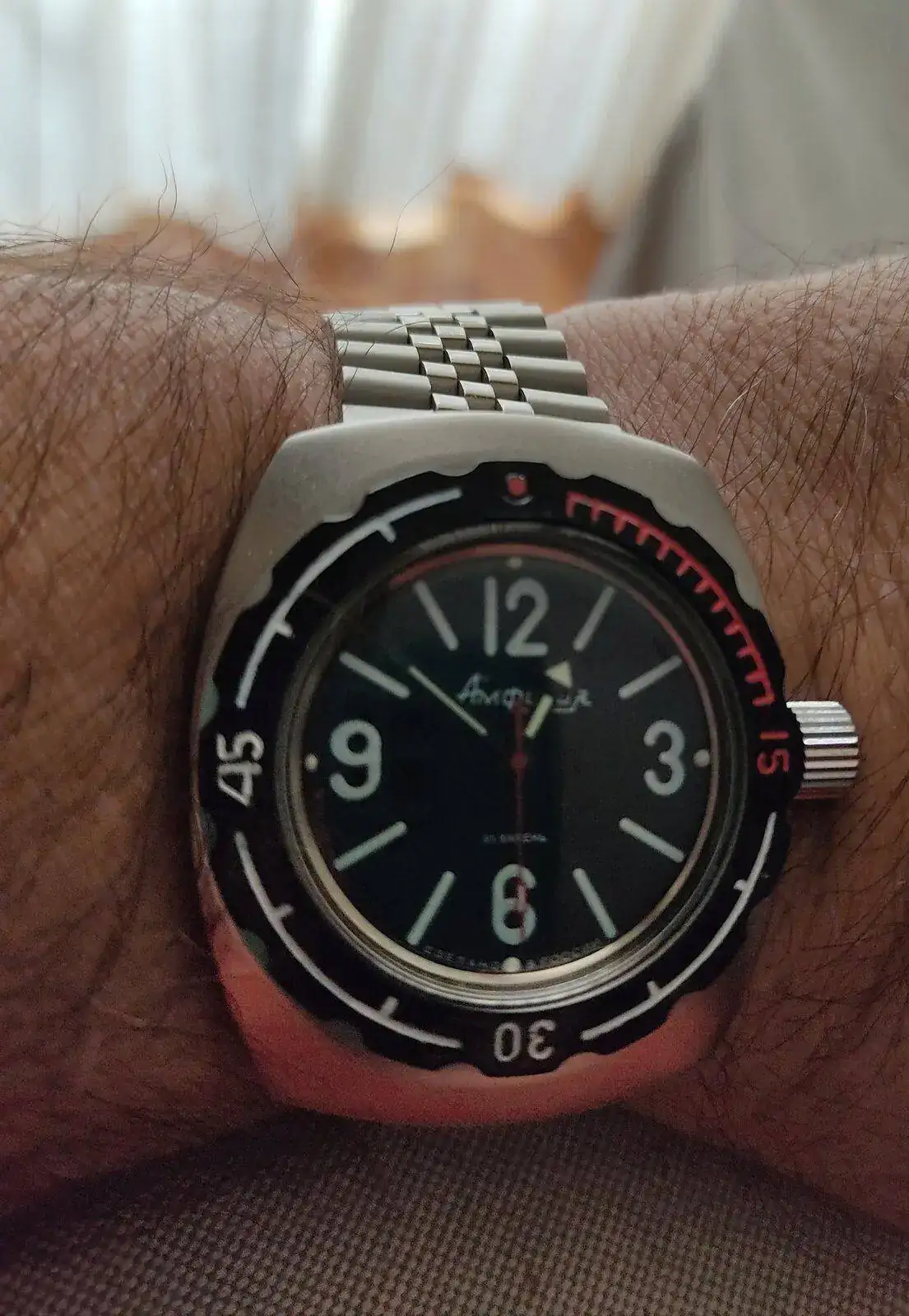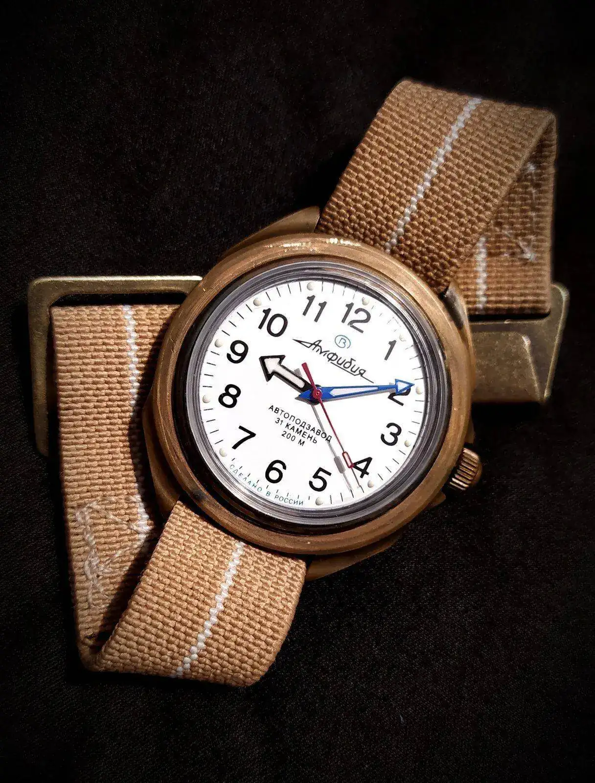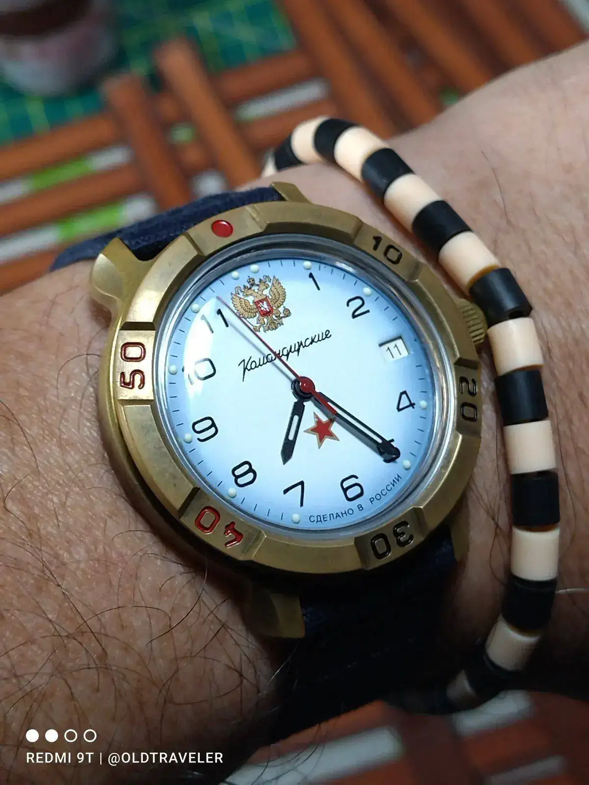 Gracias compi. Hoy coincidimos en caja y en pulsera. Bonita pátina.Ufff, vaya gozada que me he dado viendo las fotos colegas, el "chucho" (asi les dicen a los canes en la peninsula de Yucatan), hermoso, esa mirada de inocente amor, preciosa compañero, yo hoy repito con este komandirskye con el laton expuesto y una correa a juego.