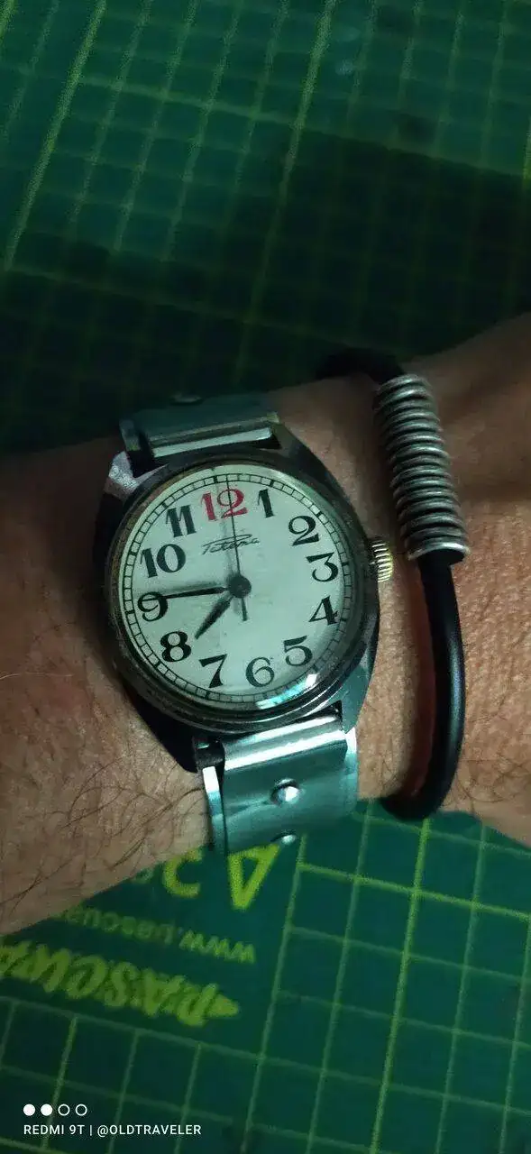 Buen dia colegas, hoy con este "abuelete" probando una combinacion con el brazalete mas raro que tengo, se trata de una version sin marca de un tipo de brazalete que fue popular entre los militares en la segunda guerra.