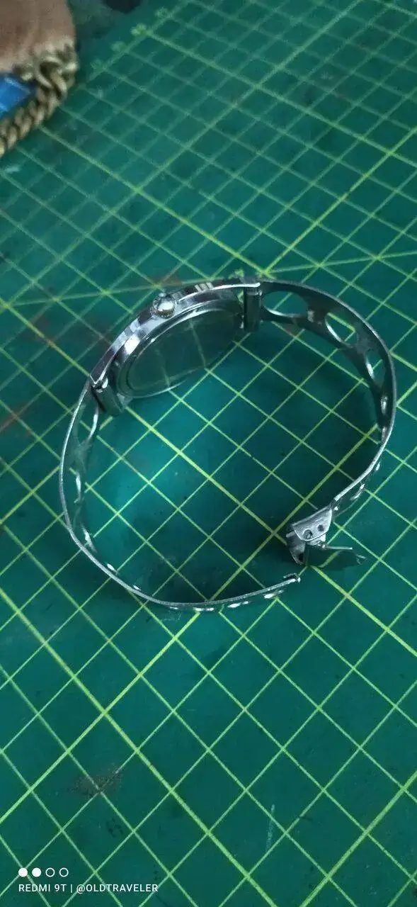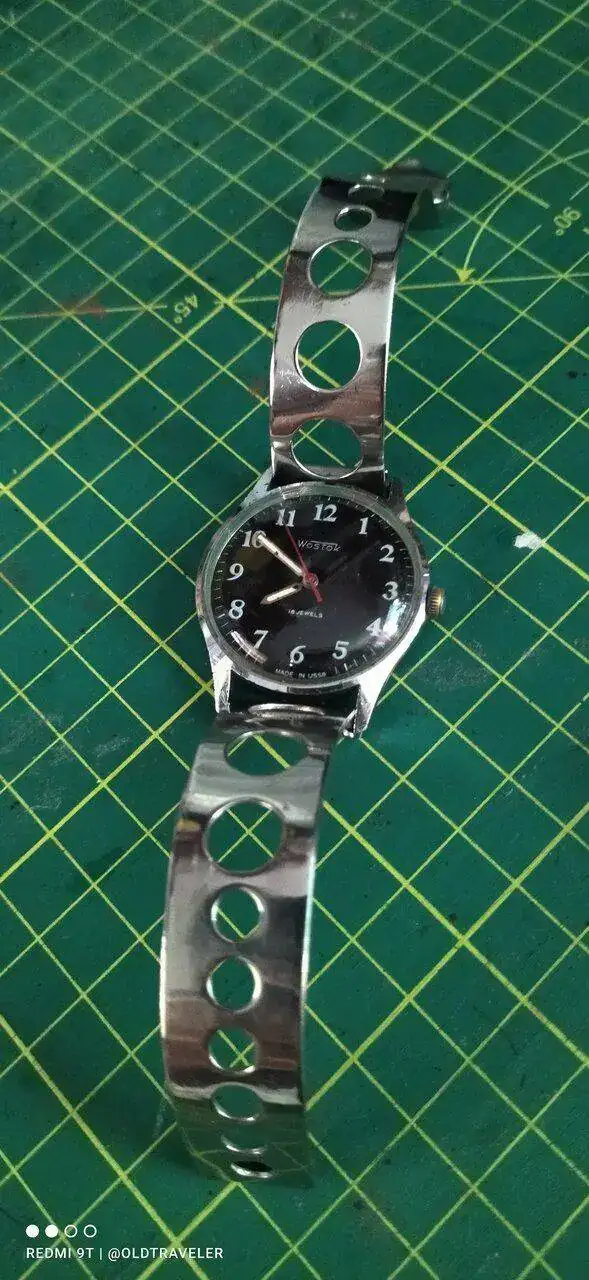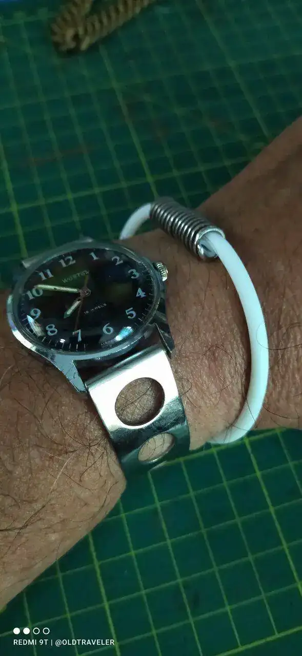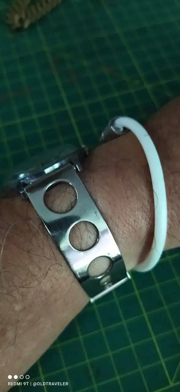 Buen dia compañeros, hoy con este venerable "abuelete" con otra correa "rara", un brazalete de acero de dos piezas, similar al de algunos modelos de Tissot