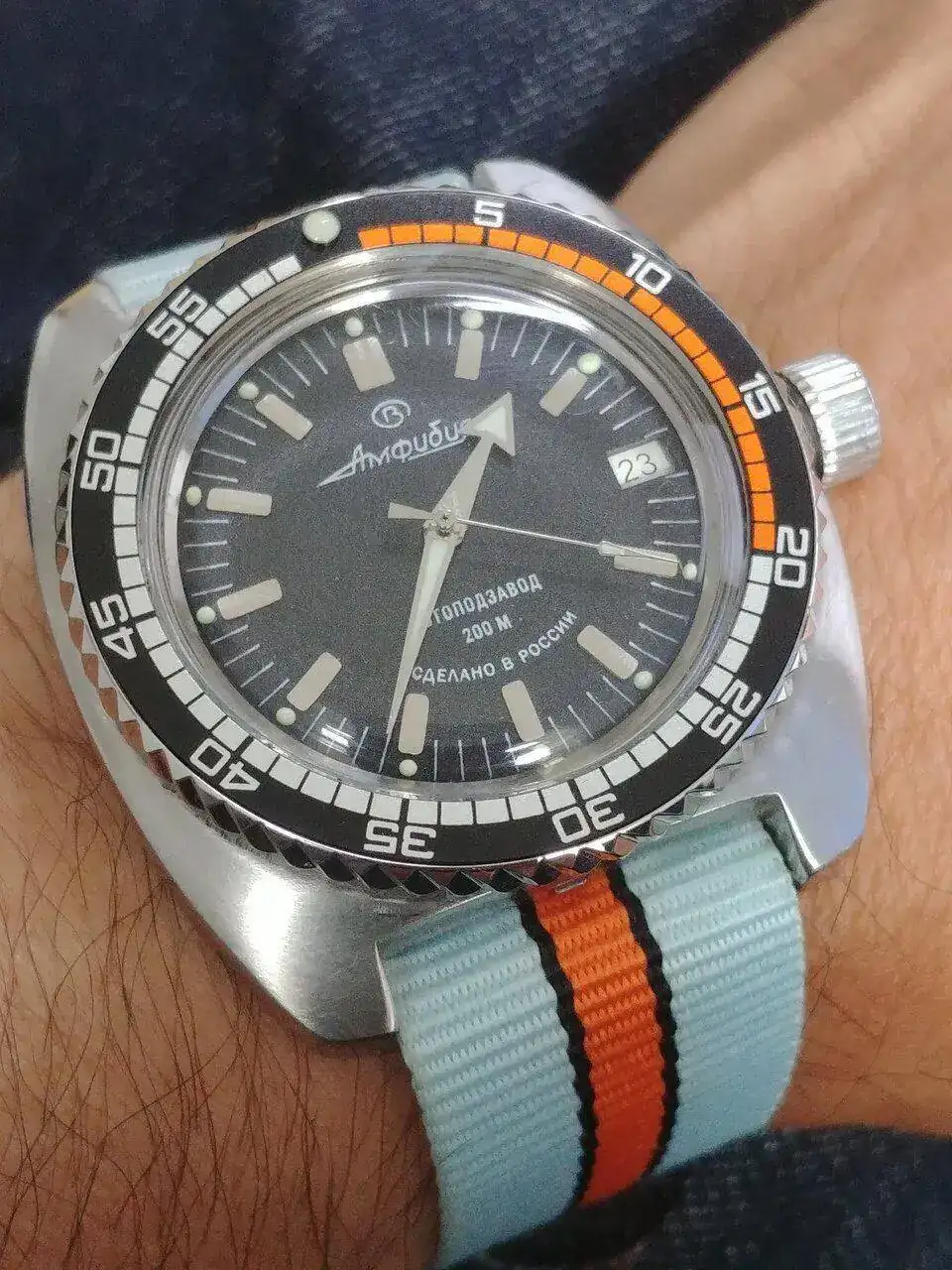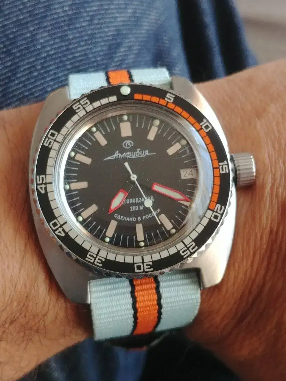 El brazalete es muy ligero, ideal para relojes de tamaño y peso contenido, su sistema de ajuste es muy sencillo y seguro, practicamente no se siente en la muñeca (acostumbrado a los contundentes Amphibia), ideal para usarse en climas tropicales.