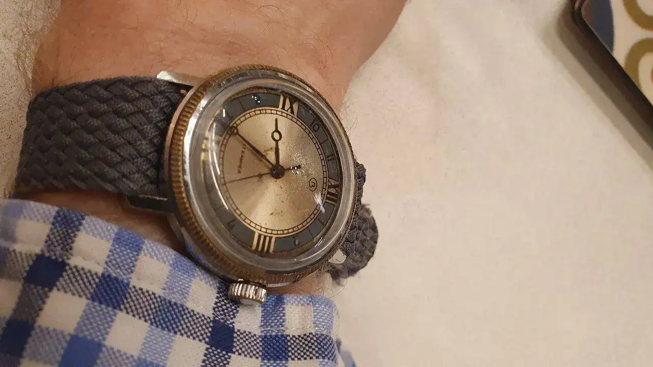 Muchas gracias Old! Pues miraré a ver si veo alguna similar, me gusta como es. Un saludo desde el otro lado del Atlántico 😉👌Gracias compañero, te comento que ese brazalete, tengo dos, lo consegui en una vieja relojeria, el propietario, relojero tambien, tenia un buen numero de correas antiguas, este en particular, se adapta tanto a cajas con asas de 22 a 18 mm es de chapas dobladas.