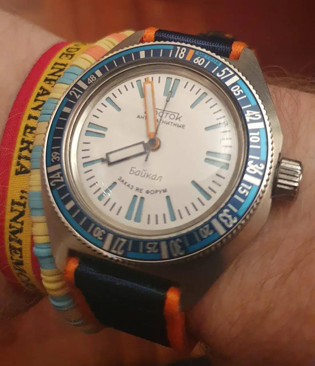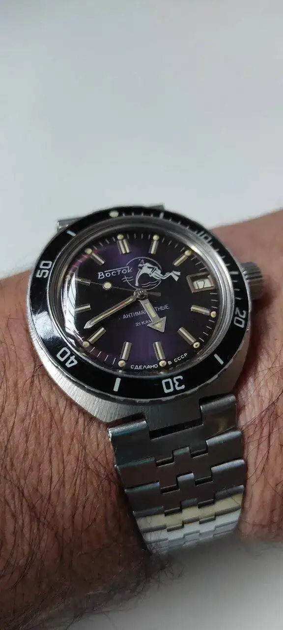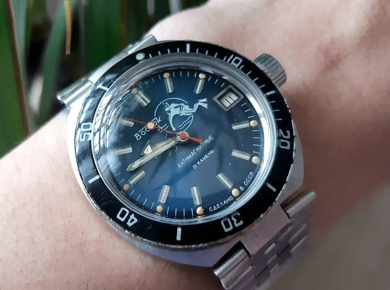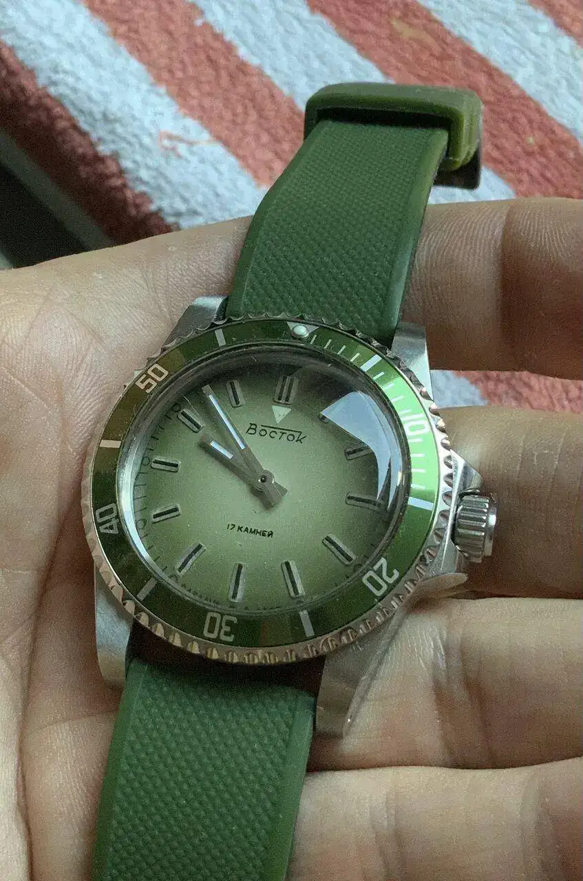 Que color tan bonito tiene esa esfera!! Me gusta en general, buen gusto relojero tiene tu santa!No es el que llevo puesto, ni es enteramente ruso, pero mi chica me ha pedido que le ponga este -movimiento nh35 sin segundero y esfera Vostok- en hora para llevárselo puesto.