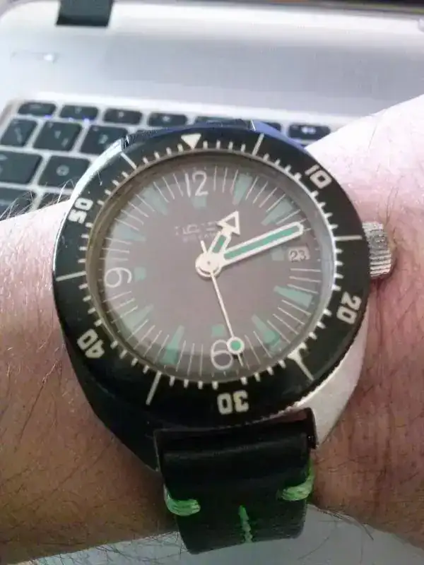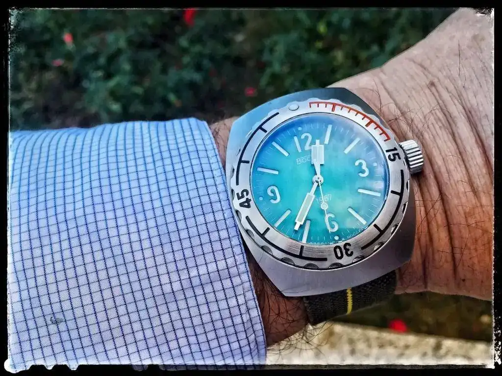 Me encanta como cambia el color del dial segun la luz que le dé (de dia turquesa, de noche aceituna)