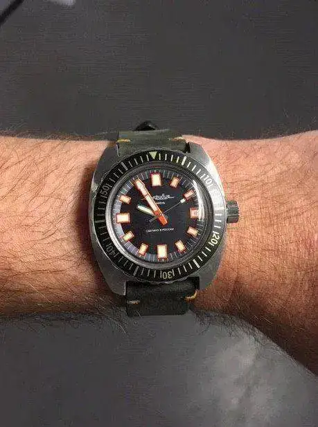 It's a dark gray Dassari leather which somewhat matches the gray chapter ring. I wouldn't say it's my final strap choice, good enough for today though![]()