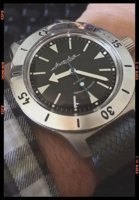 Buenas tardes! Poljot de cuerda con calibre 3105. Correa cambiada. Pregunta del millón: el degradado de la esfera da en verde? Gris? Gris verdoso? Soy un hereje al llevarlo con camisas verdes como la de hoy? Un saludo