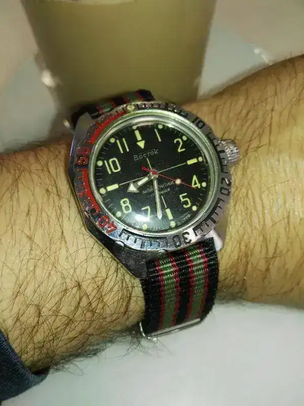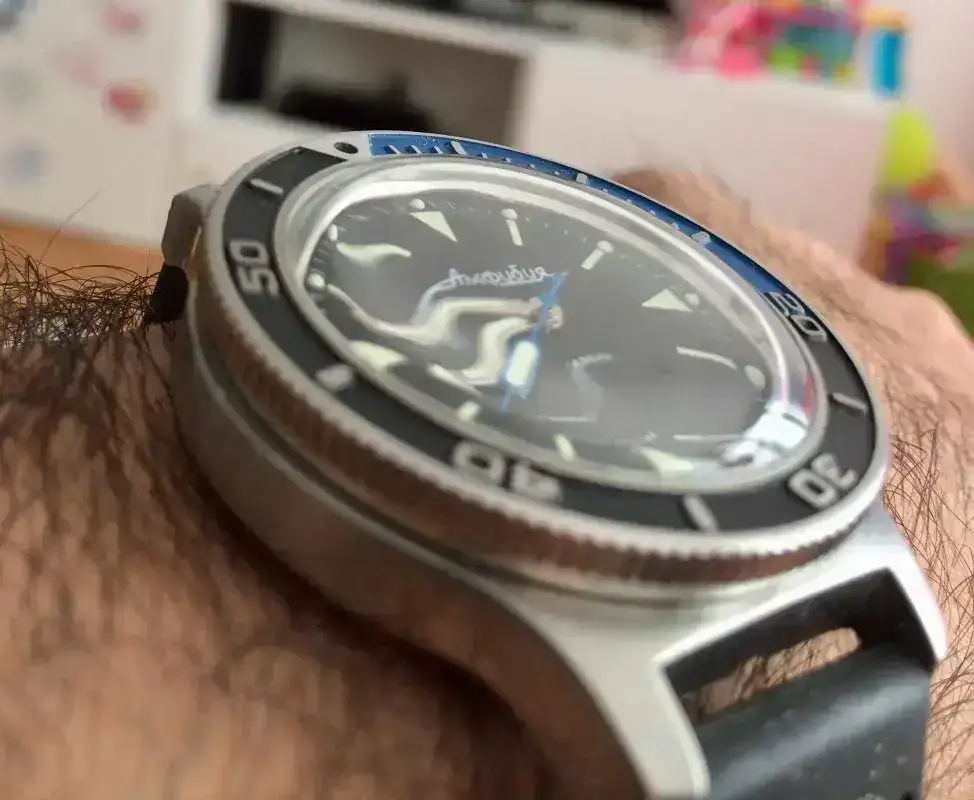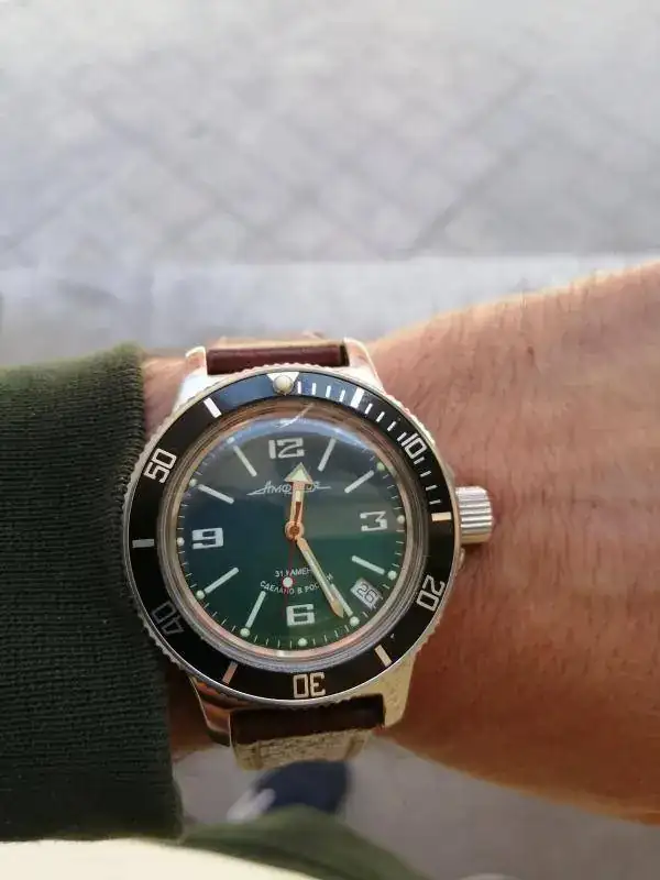 Llevo varios días con mi Amphibia 710640, con correa de piel muy cómoda y de las BBB de AliExpress. A la espera de cambiarle ésta por otra de acero de cara a cuando comiencen los baños en la playa.