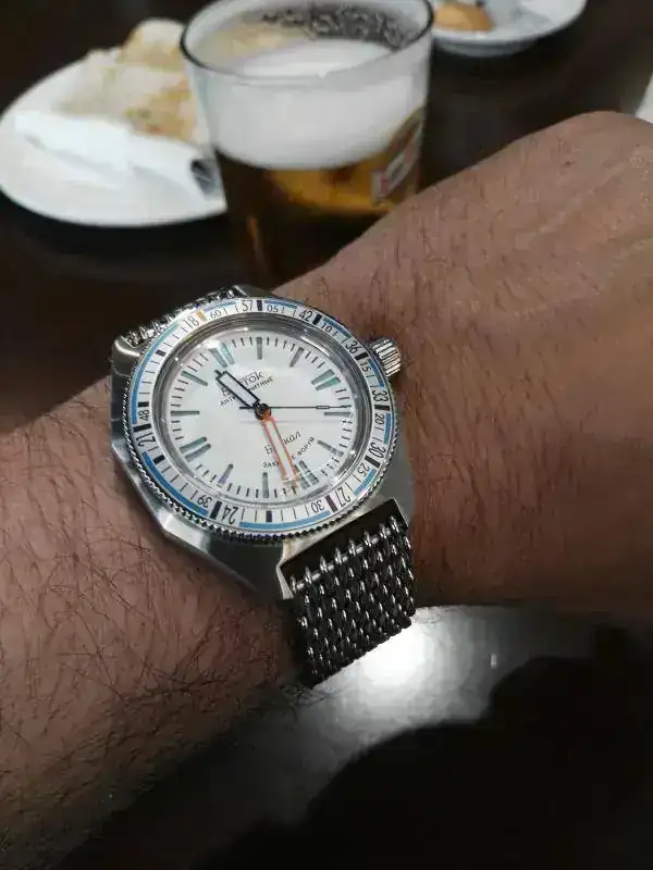 A estas horas no se que me gusta mas. La cervecita o el reloj [emoji23][emoji23][emoji23].Y a mi me encanta el que enseñaste ayer, Jaume, que bisel y que conjunto tan guapo!. Por supuesto el Poljot de Lagazeta...se me cae la baba