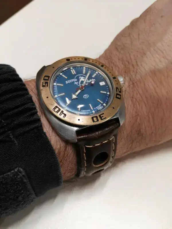 Puedes probar con una MN azul o negra con la rayita blanca, como las agujas, si me permites la sugerencia...
