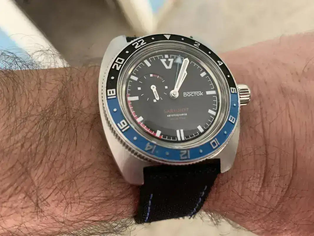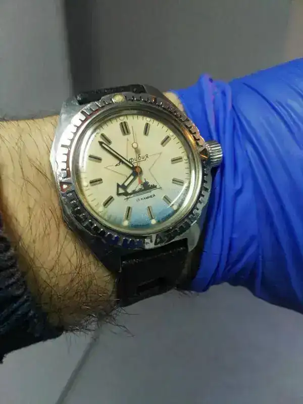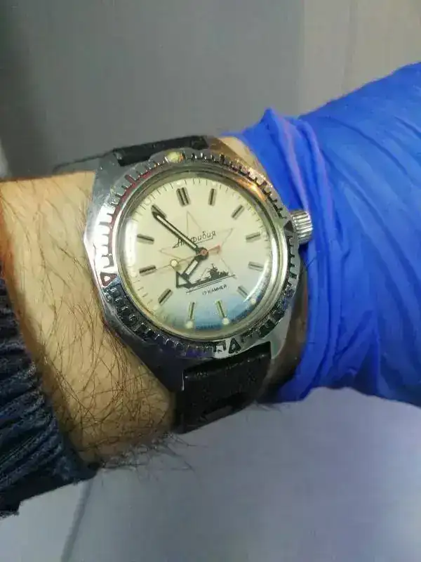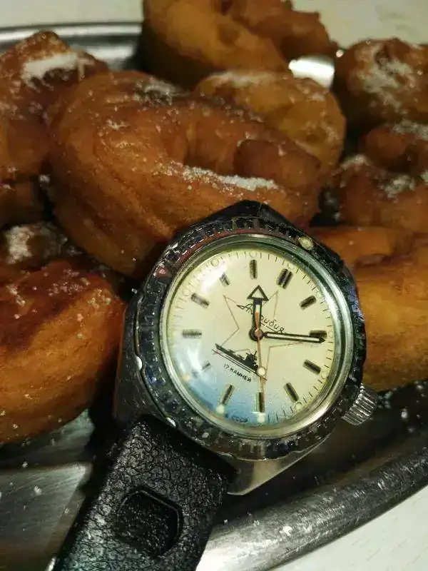 Estaba justo ahora hablando del reloj con mi mujer, fue de su padre y cree que se lo debió de regalar su madre, por supuesto el valor sentimental es incalculable, éste es un Raketa Samson, llamado así porque representa en la trasera una enorme fuente de Sansón que hay en el palacio de Perterhof (El Versalles ruso)... Me he enamorado de los Raketa 2209, tienen una estética maravillosa, unos diales preciosos, encerrados en cajas elegantes y agujas perfectas para el caso, me han gustado mucho los de bolsillo, pero me han enamorado los de pulsera, si no fuera porque prometí no comprar relojes este año... ::bash::