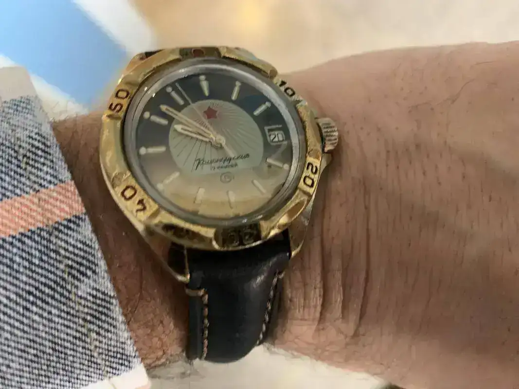 Buenos días, Jaume y amigos!. Bonito y elegante azulito :dribble:. Yo llevo este Komandirskie de caja inusual y no del todo de mi gusto, pero estaba con la fecha bien y me lo puse :D...IMG_20200423_075325.webp, IMG_20200423_075323.webp.