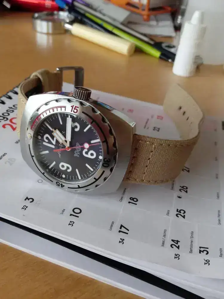 Con la modificación "tormenta de arena" porque me ha quedado un "look arenoso" muy importante con estos colores de agujas, bisel y el arenado de la caja[emoji23][emoji23]