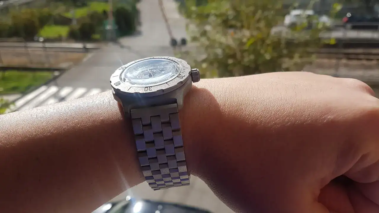 Me he vuelto cliente habitual de una vieja relojeria de mi ciudad y ayer toco visitarla, buscando un brazalete para este pequeñin, sus 18mm entre asas eran poco habituales en mi grupo de correas de recambio.