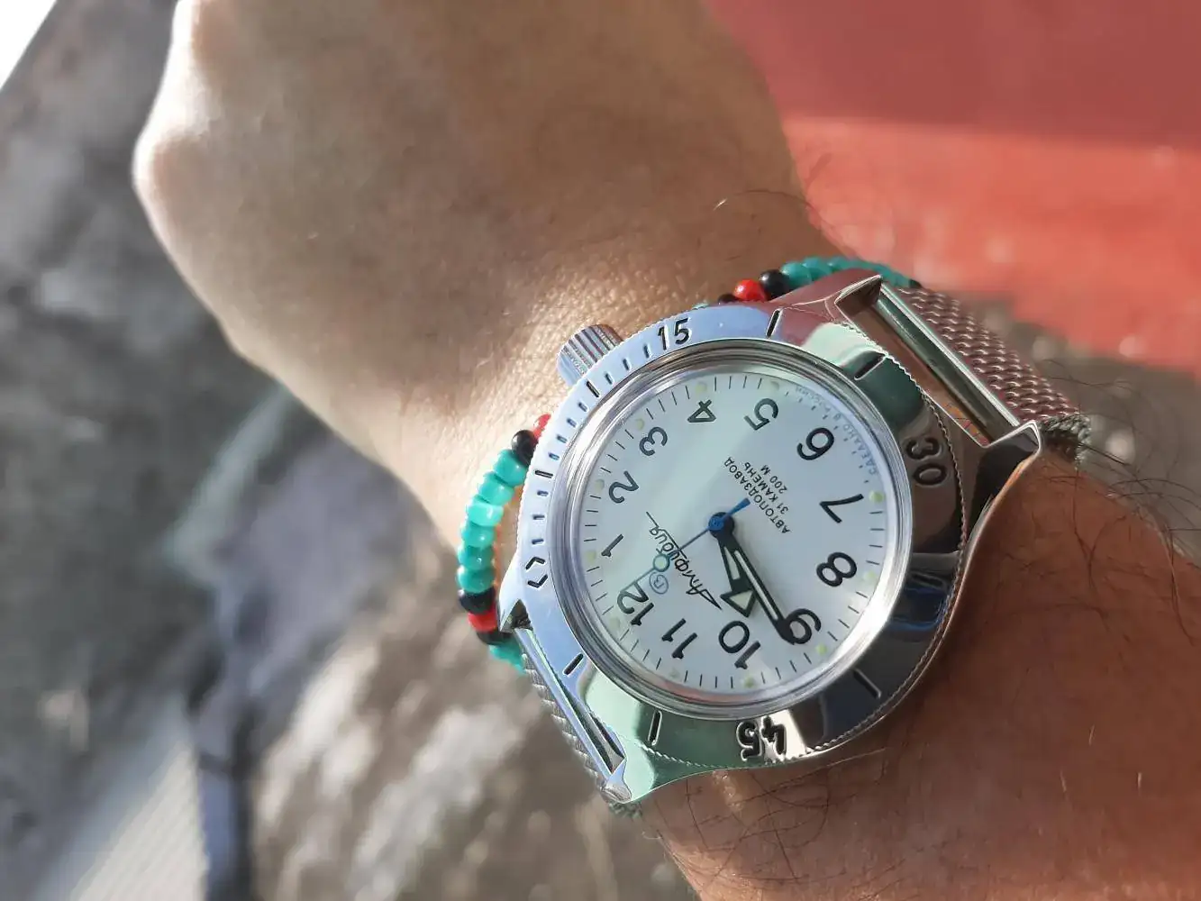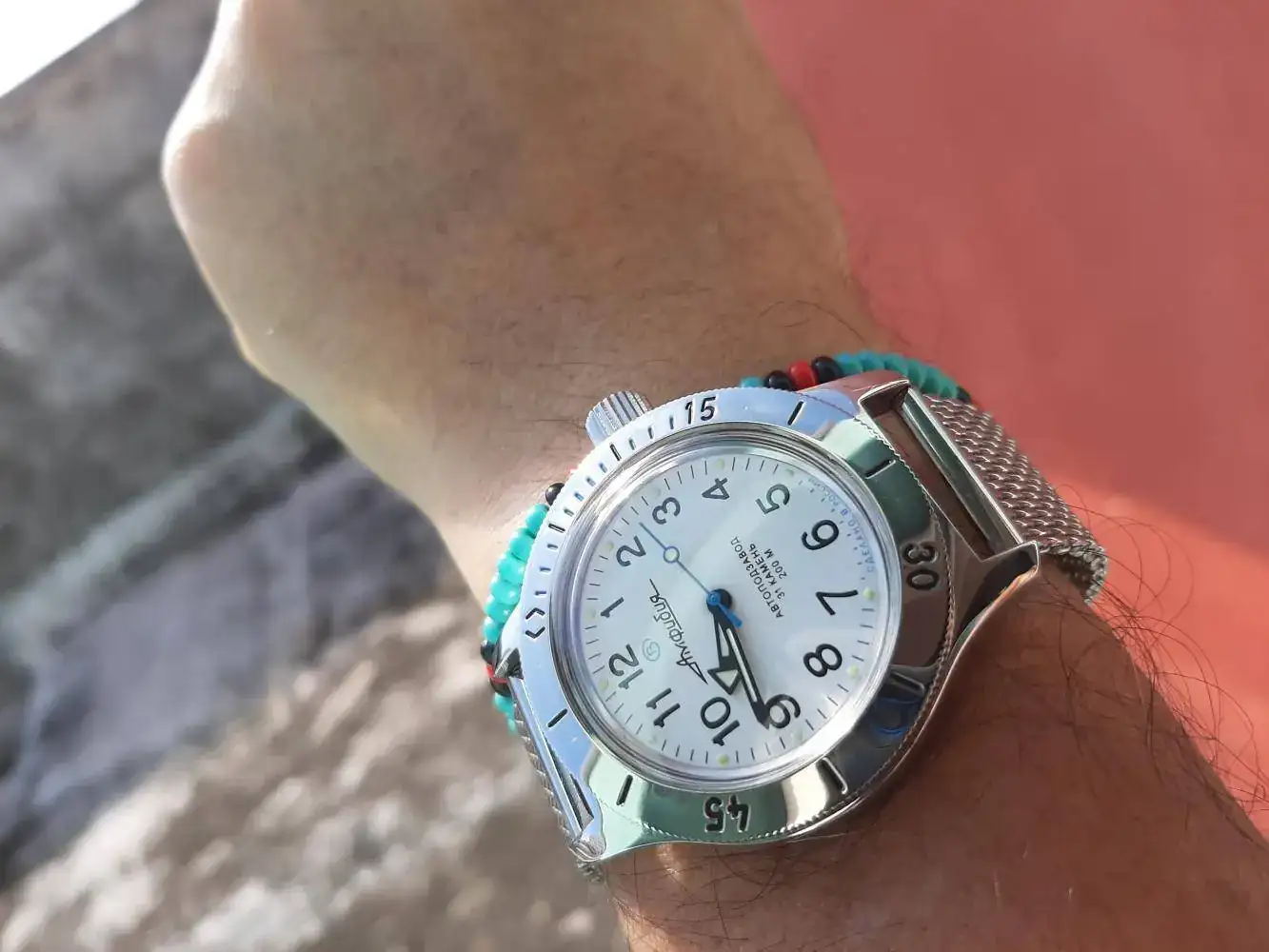 Buen dia colegas, saludos desde Mexico, le consegui una milanesa gordita a mi recien llegado ruso, es complicado ponersela uno solo, pero una vez asegurada en la muñeca, no se mueve ni con un tsunami, y el pestillo de cierre, queda tan bien asegurado que si lo intentas abrir con la uña , corres el riesgo de perderla., pero me gusta por la sensacion de robustez que aporta al conjunto.