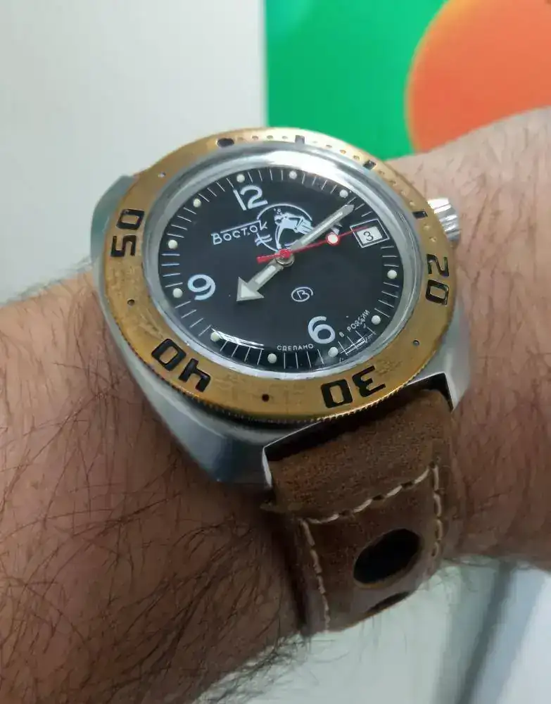 Últimamente he observado que, como los diales Vostok son relativamente pequeños, a menos que quieras darle un aspecto vintage al conjunto quedan muy bien los biseles del color del dial, le dan un aspecto más moderno, sobre todo en cajas grandes como la 090... Esto lo digo para autojustificar la compra del bisel negro que he hecho![]()