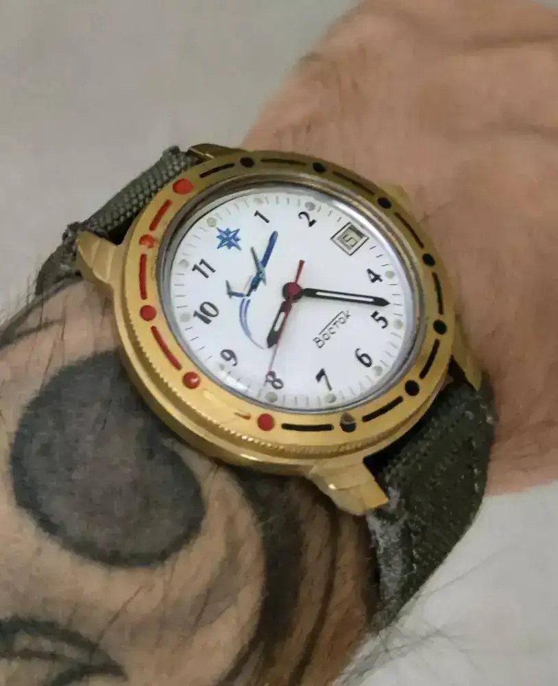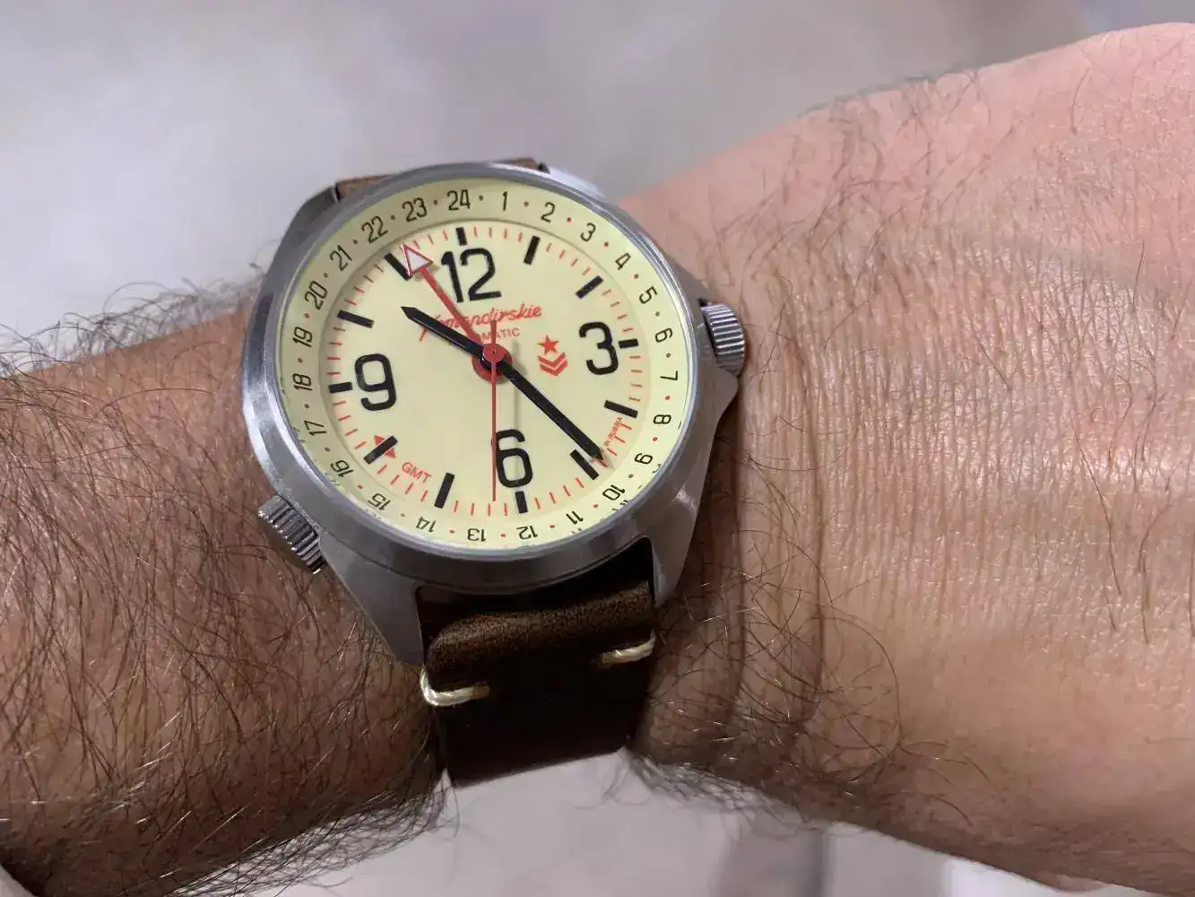 Les pongo unos pasadores que permiten adaptarle con facilidad correas de cuero o goma y así permiten alternar el brazalete metálico original, que a mi me resulta demasiado “soviético” o pobre, para lo atractivo que me resulta el reloj, con otras correas un poco más elegantes...