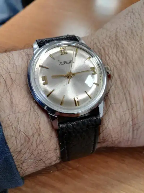 El reloj en líneas generales ha llegado bien a nuestros días, teniendo en cuenta que tiene más de 50 años de edad. Todavía conserva su finura, y carga bien. Me da lástima que el dial no haya llegado tan bien, porque creo que es una pieza histórica y delicada que ha sufrido de algún modo una intervención humana inadecuada.