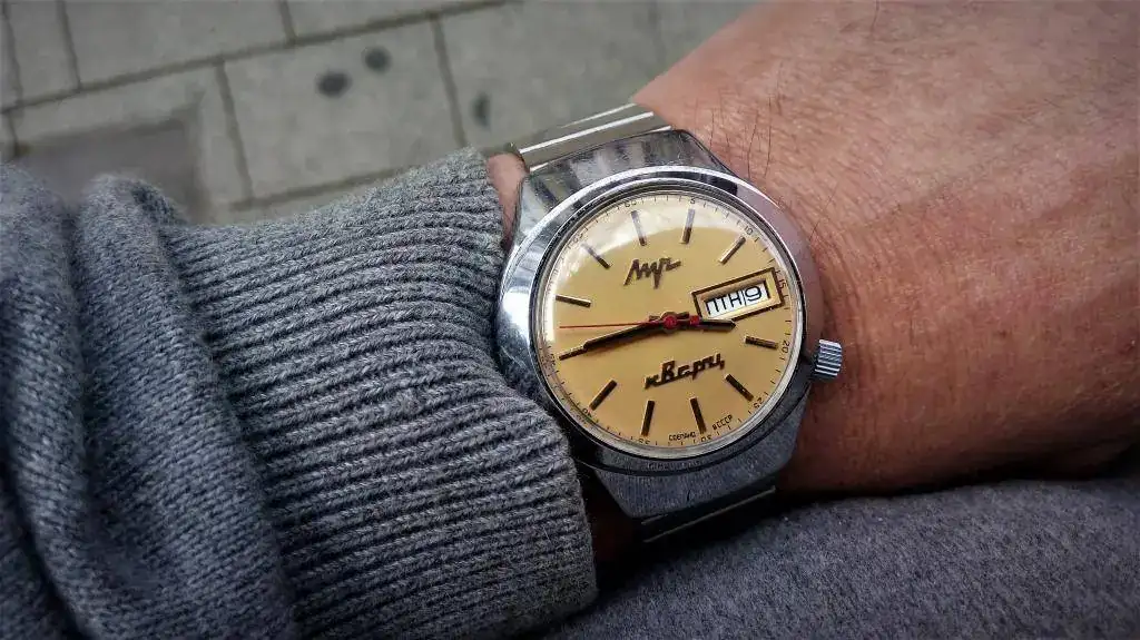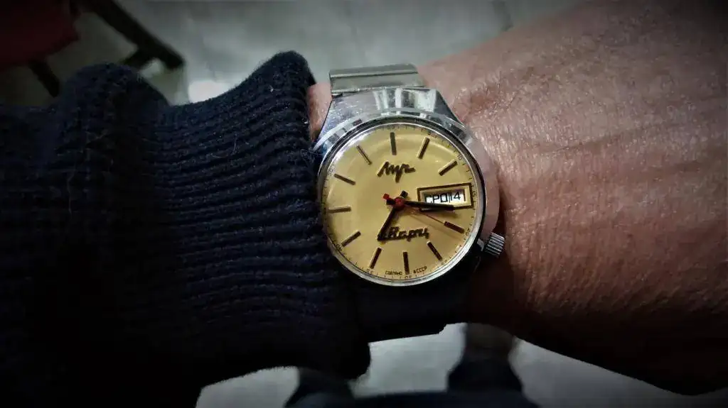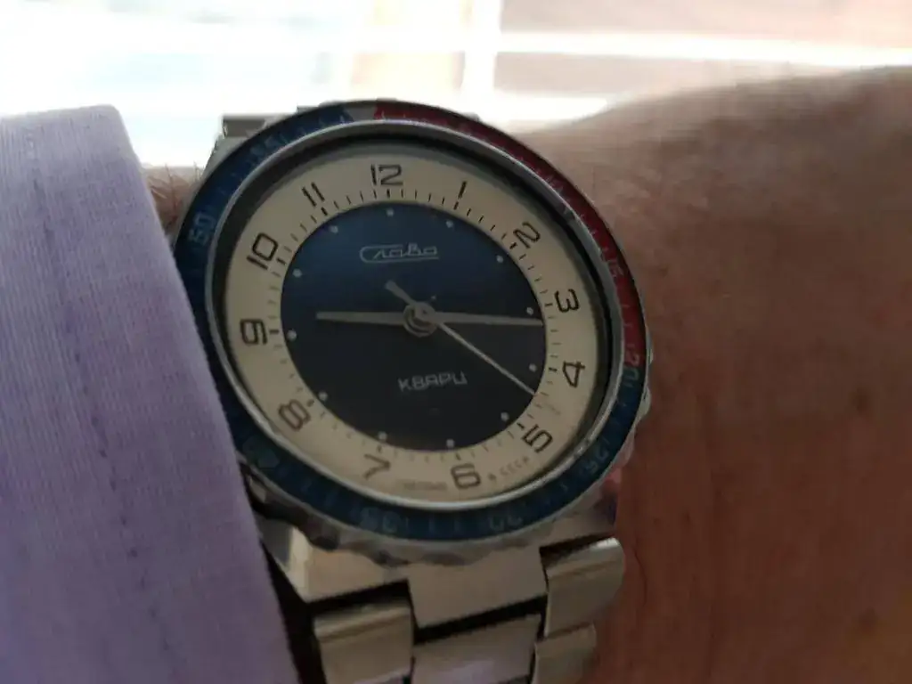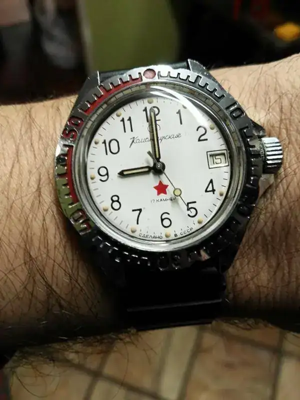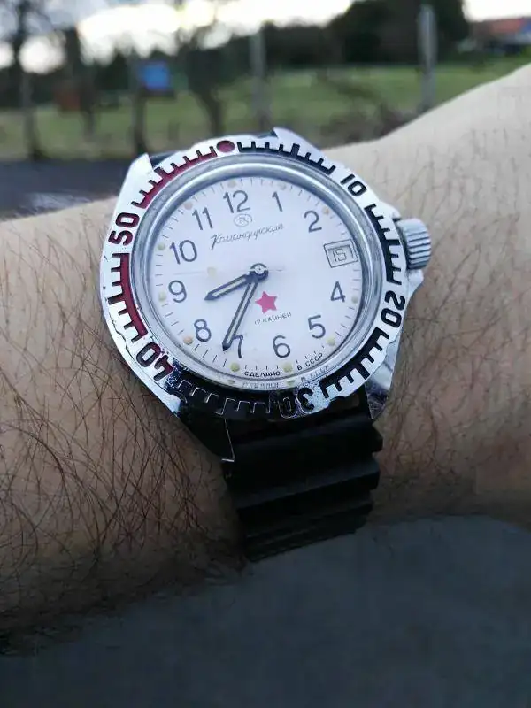 Hoy llevo un Orbita de la Primera Fábrica de relojes de Moscú, supuestamente fabricado entre 1962 y 1963, con movimiento automático 2415, tapa a presión, e imagino que con carácter conmemorativo del vuelo de Gagarin. No sé si fue un nombre transitorio antes de Poljot, con ideas a utilizarlo en todos los relojes, pero en todo caso, a partir de 1964 se impuso el término Poljot. Debe ser uno de los últimos relojes que se identifican como de Kirov o Kirova antes de los Poljot.
