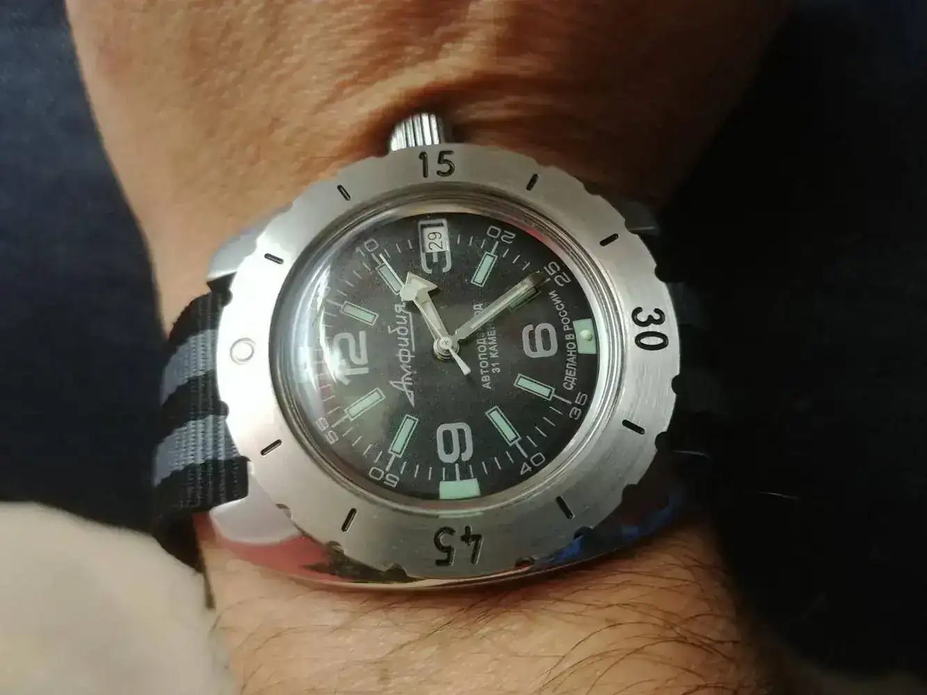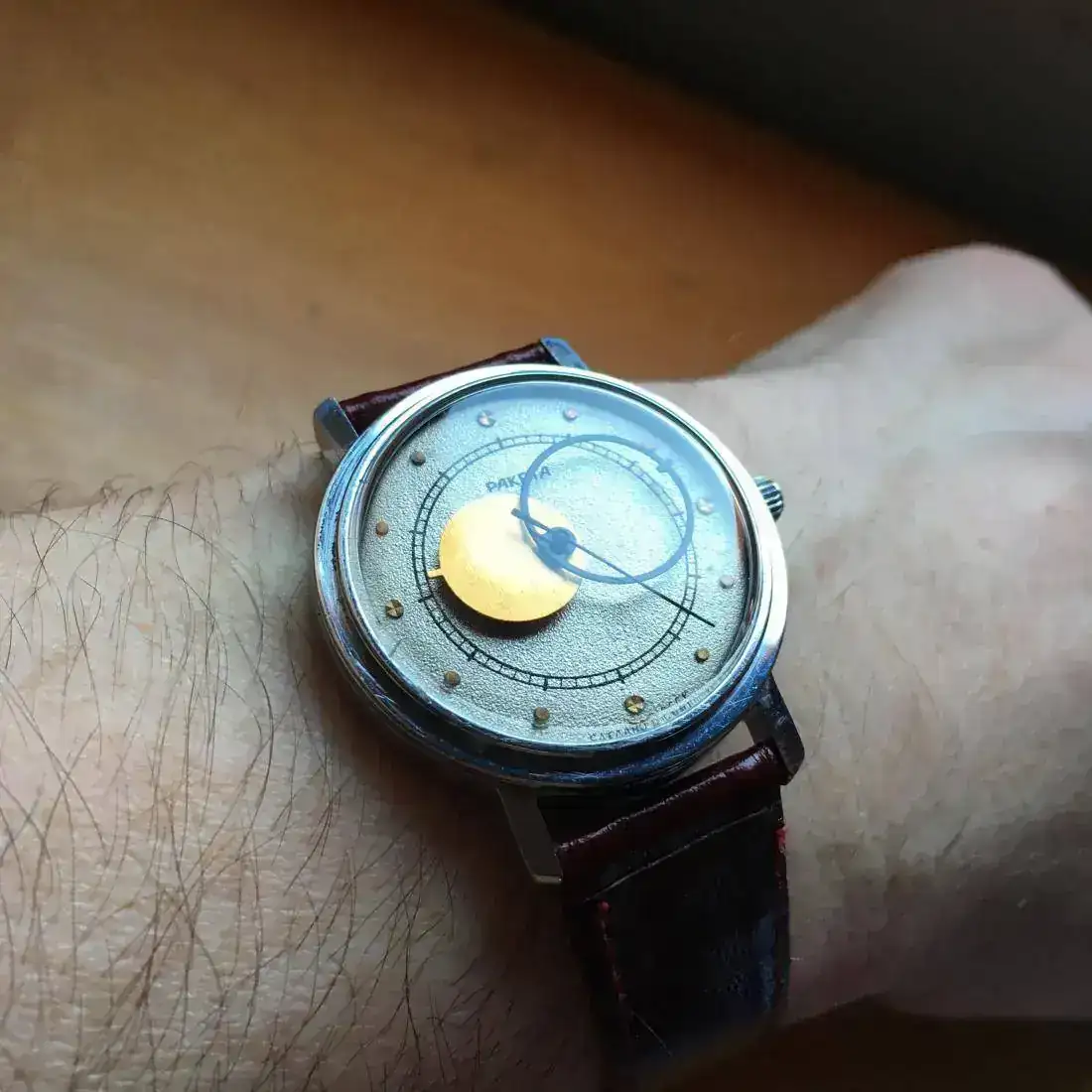 Pues me he liado a cambiar un dial y unas agujas y he acabado desmontando hasta el sistema de remontoir, se me ha salido el muelle de la báscula de su sitio cuando ponía la tija y vuelta a empezar, total que me he entretenido un buen rato al estilo Arkaitz, cervecita en la mano. El resultado