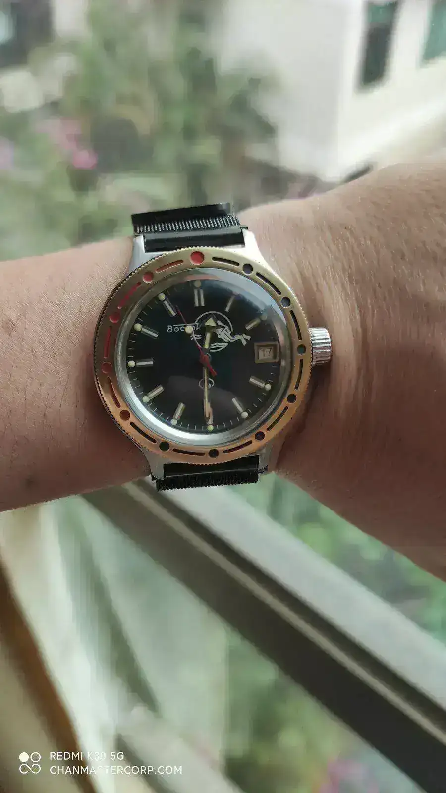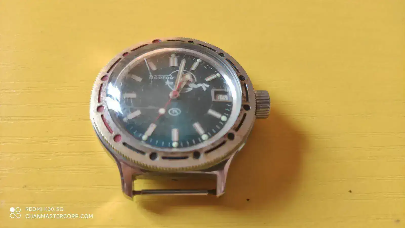 También podría ser que hubieran trasplantado el movimiento, pero me inclino más por su origen Luch. Si fue Poljot en origen, la tapa de acero debería tener unas líneas de pulido concéntricas en vez de paralelas.