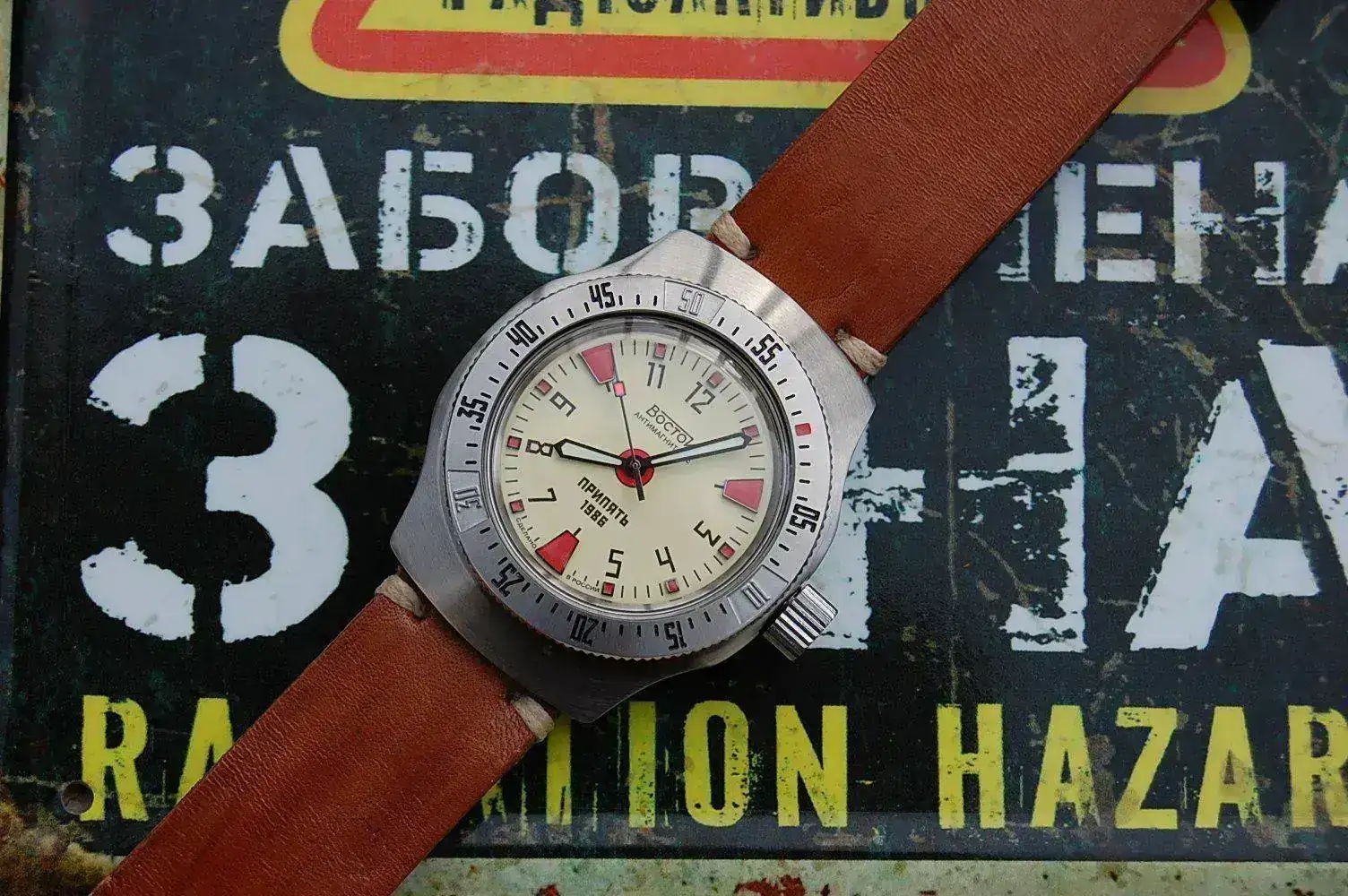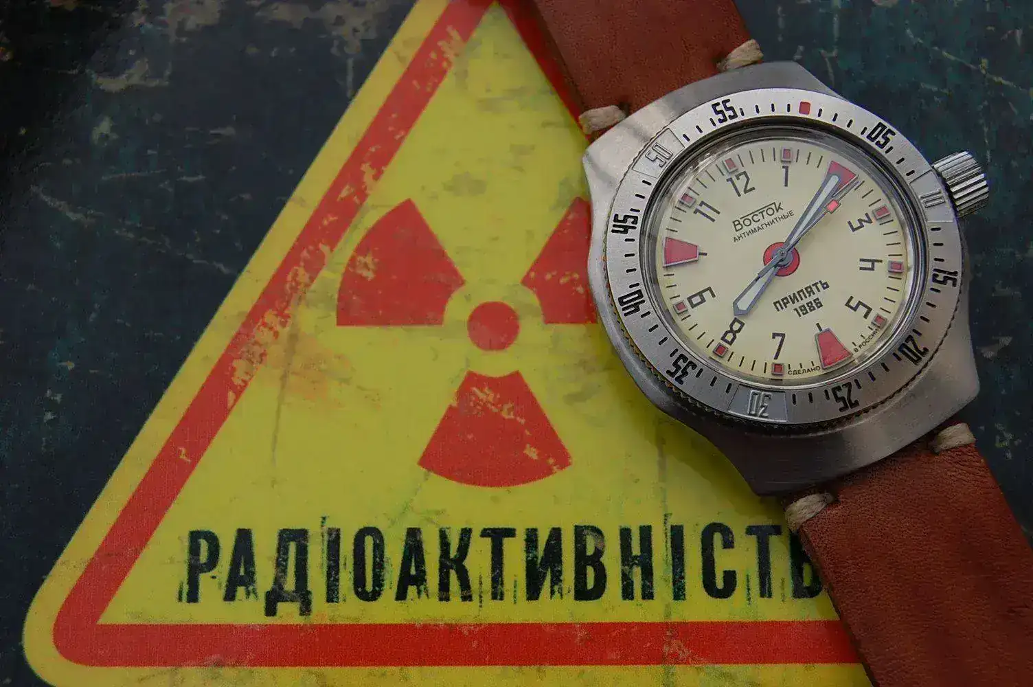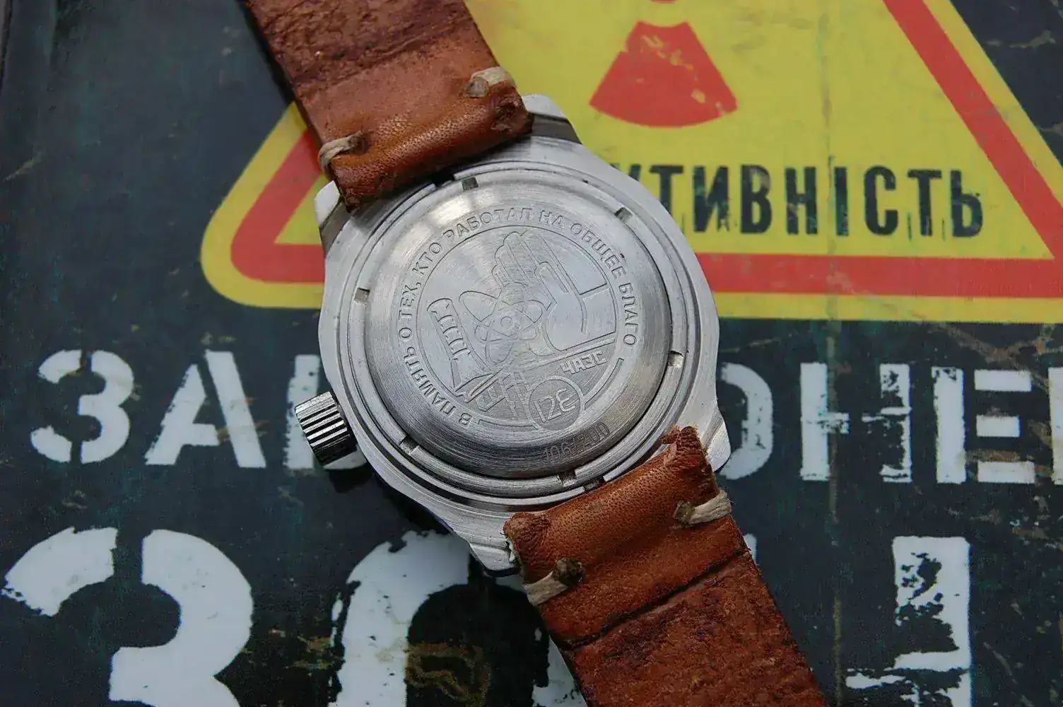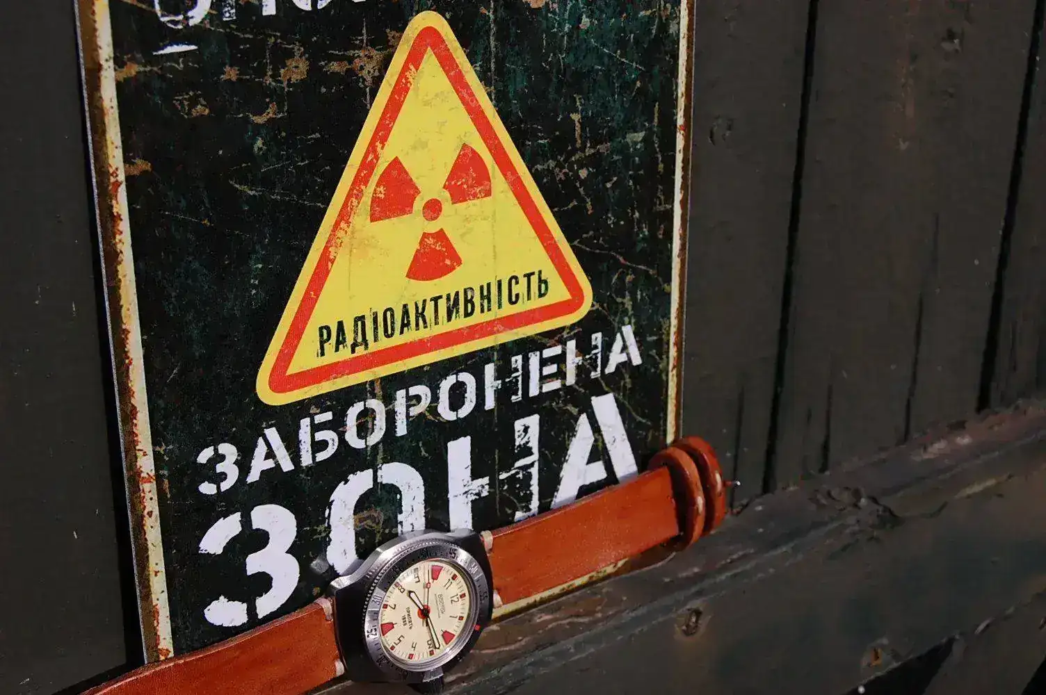 Hola, las tomé en casa, la base es la imagen de una señal de advertencia por radiación, que se ha impreso sobre una placa metálica para que la puedas utilizar a modo de decoración, la vi navegando por internet y me gustó; el reloj ya lo conoces, es el RE IV, y la correa que ya tiene su trote, es de un artesano búlgaro que me encontré en la bahía, te cuelgo alguna otra imagen:Precioso y magníficas fotos, ¿dónde las has tomado? Saludos.