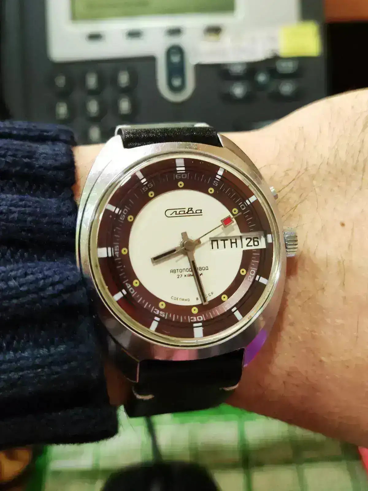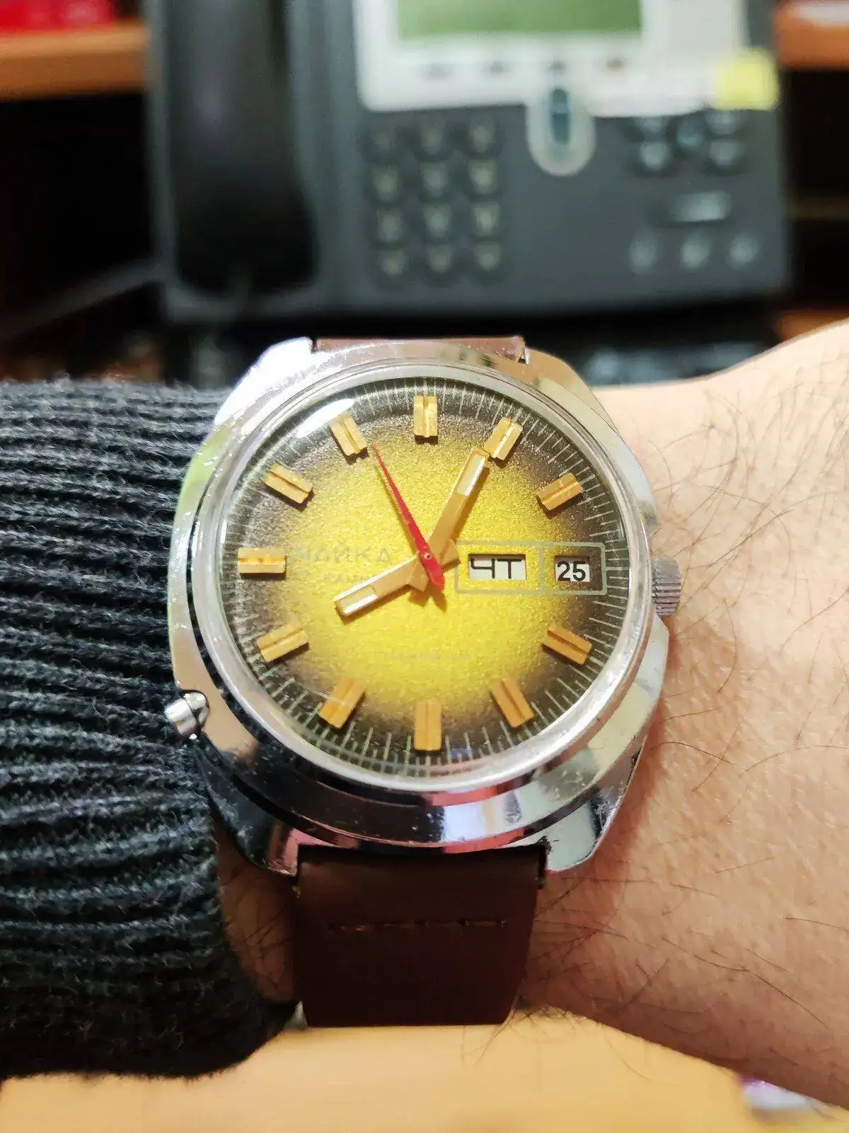 Gracias! Pues no te vas a creer como venía, traía roña de la estepa rusa para parar trenes y el plexi que casi no dejaba ver la esfera, pero se le adivinaba el potencial, así que me hice con él. Ya empieza a costar conseguirlos en cirílico y en buen estado, creo yo.😓