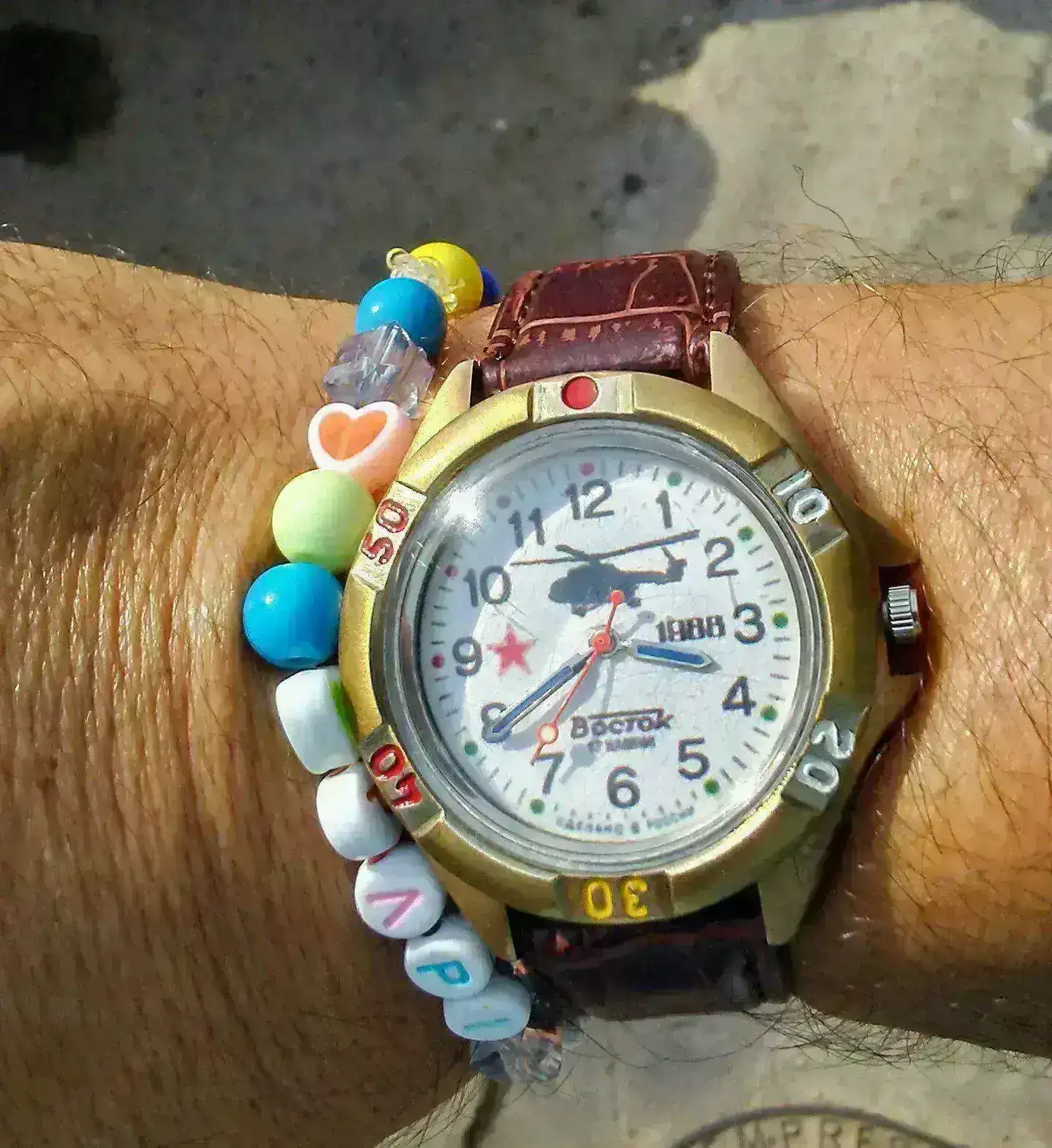 Le llamo Vostok afganistan...se ve raro con un dial que dice17 joyas y con tripas de cuarzo... Pero la idea era no perder mucho tiempo con ese cadaver brasseado ... Ademas ese dial esta algo dañado.