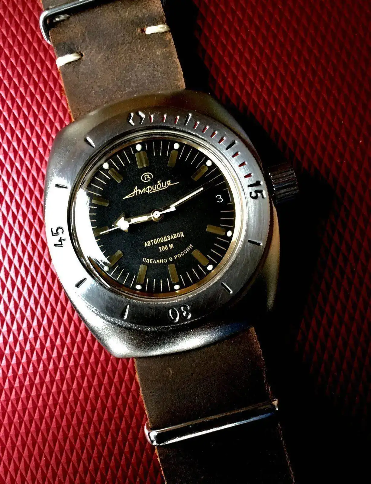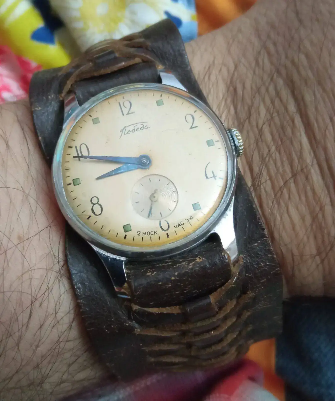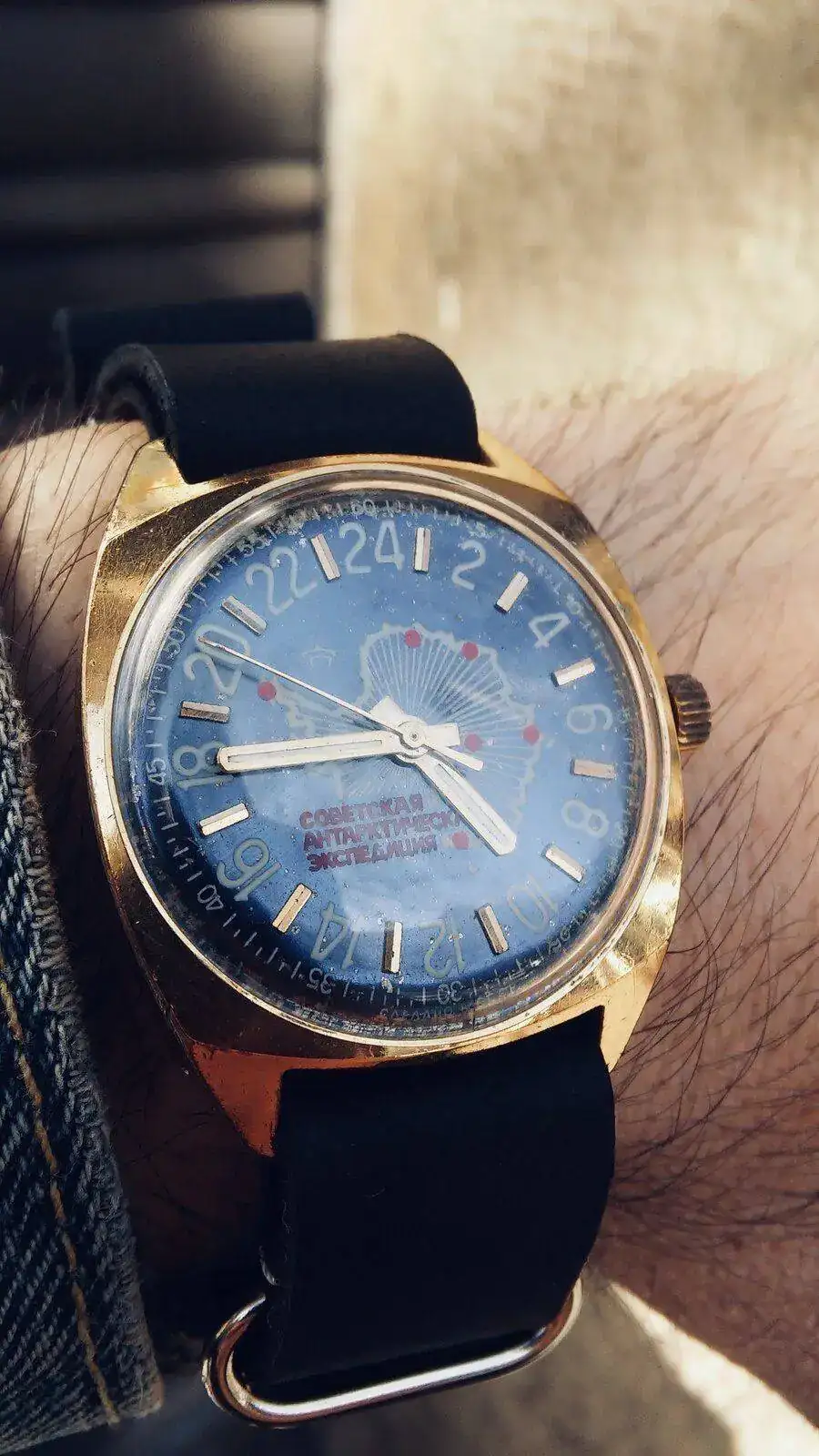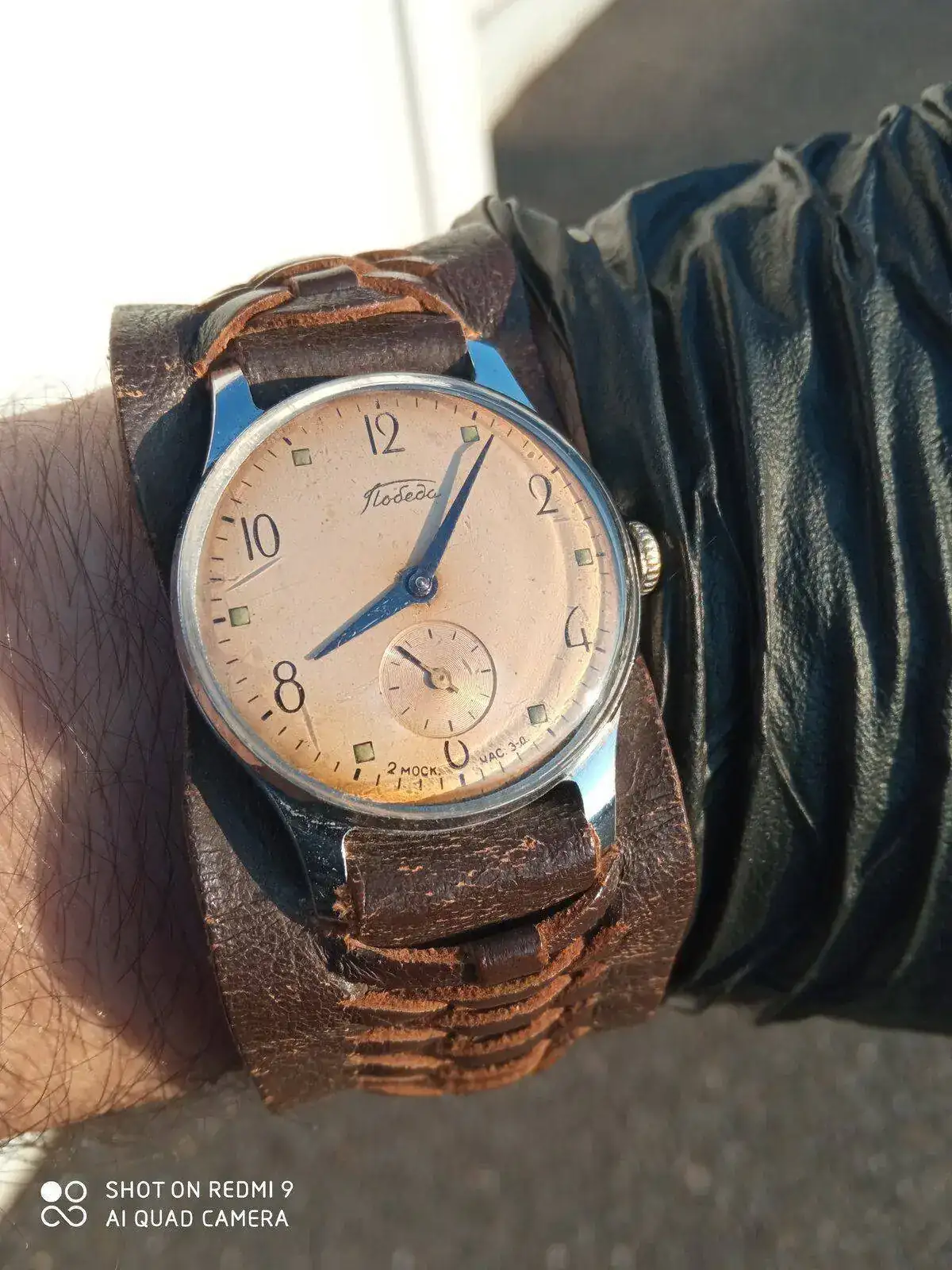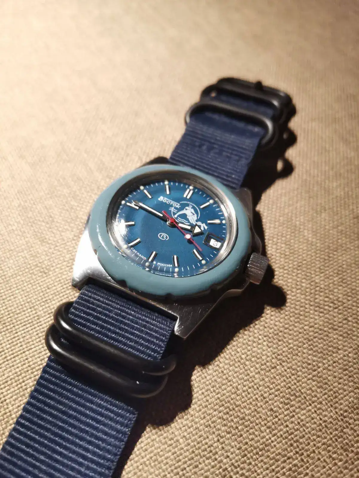 .Me había fijado en el tuneado del segundero, y en mi opinión es algo a valorar que el anterior propietario afrontase el reemplazo de agujas con ese mimo. Es una reparación con aroma de personalizaciónBuenos días!. Hola Xabi! aquí está el Pobeda, yo también pensé que tenía la esfera tostada o con pátina, cual sería mi sorpresa cuando vi que era de un precioso color cobrizo. Y si, también pensé que le habían cambiado las agujas, creo que tienes razón, deberían ser con lumen. Pero estas están preciosas y creo que las voy a dejar. Fíjate en la aguja del segundero, es como si hubieran pintado de azul el extremo. Me gusta así y así se quedará