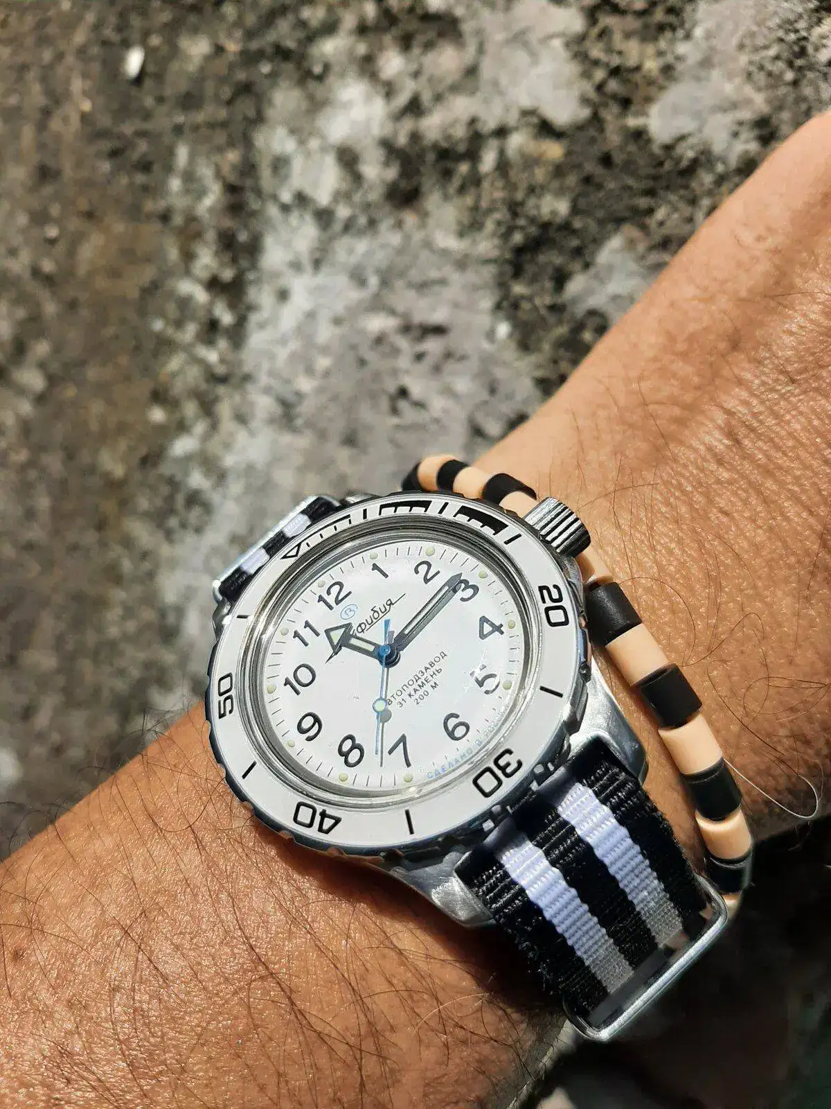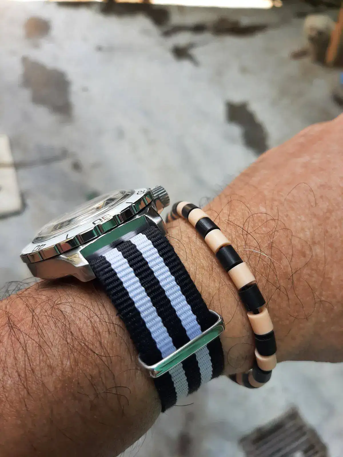 Camarada como le has metido ese bisel a la 120? 😱. Yo no lo intente porque pensé que tocaba la corona pero veo que no!Hoy me apeteció sacar a pasear al "guero", pero le cambie la correa,la calcé una nato que me obsequiaron hace tiempo en una tienda local de correas, y ademas, voy a inaugurar mi particular y personal "Semana de la Nato", (asi como Discovery Channel, tiene su semana del Tiburon, yo voy a hacer lo mismo pero con las correas y relojes ), durante toda la semana voy a hacer la rotacion habitual de relojes, pero todos seran con Nato, para poder evaluarlas en directo, pues si bien tengo un pequeño surtido de natos, las uso mas bien poco, pero esto cambiará al menos por esta semana.