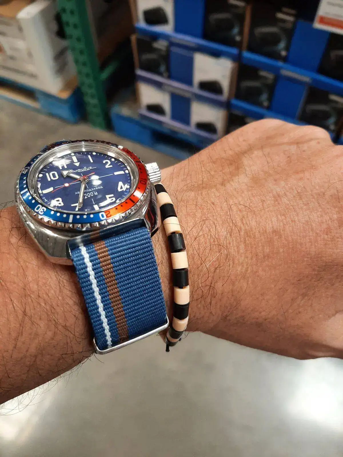 Preciosa combinación!! 😍Buen dia colegas, continuo con mi muy personal "semana de la nato" , y hoy saque a pasear este pequeño, con una nato que no habia visto accion todavia, debo decir que me estoy llevando impresiones muy positivas acerca de las natos para "los calores"son correas muy comodas, soportan muy bien la transpiracion y lo principal, permiten el cambio rapido de correa, asi que , de momento. Punto para las nato en comodidad y practicidad.