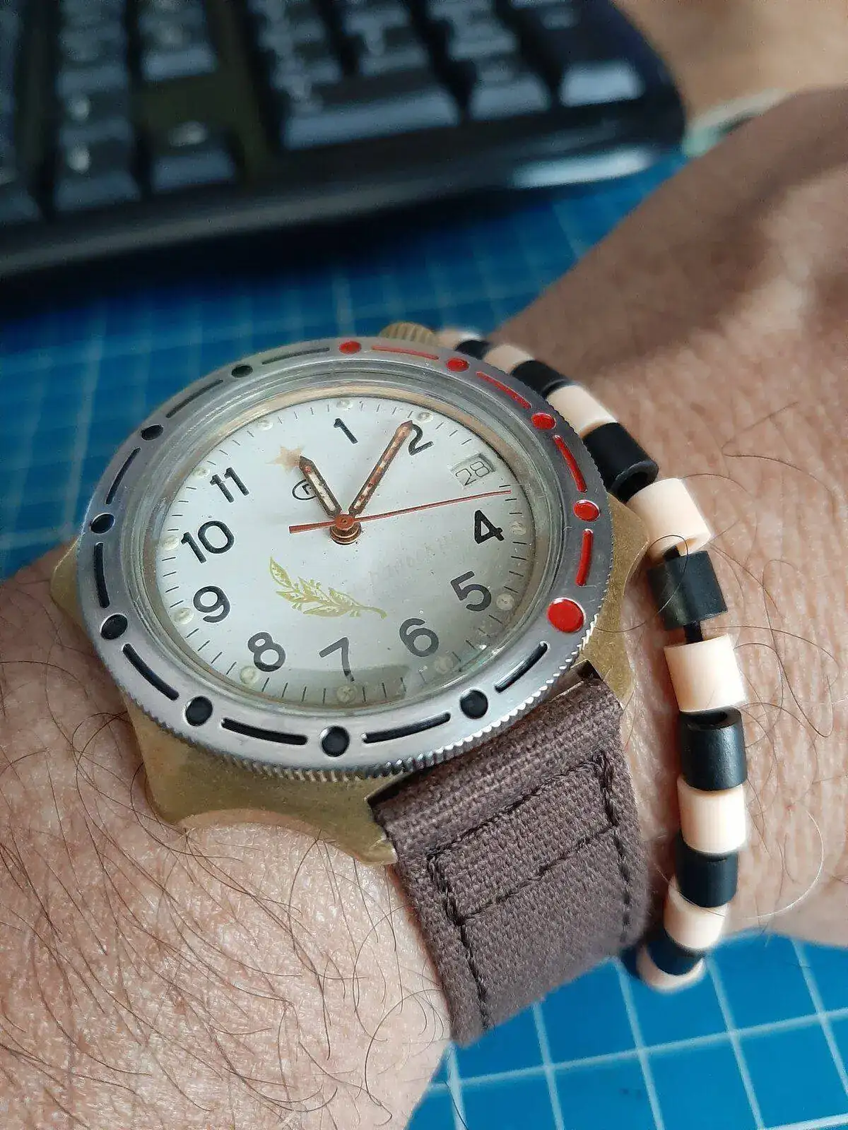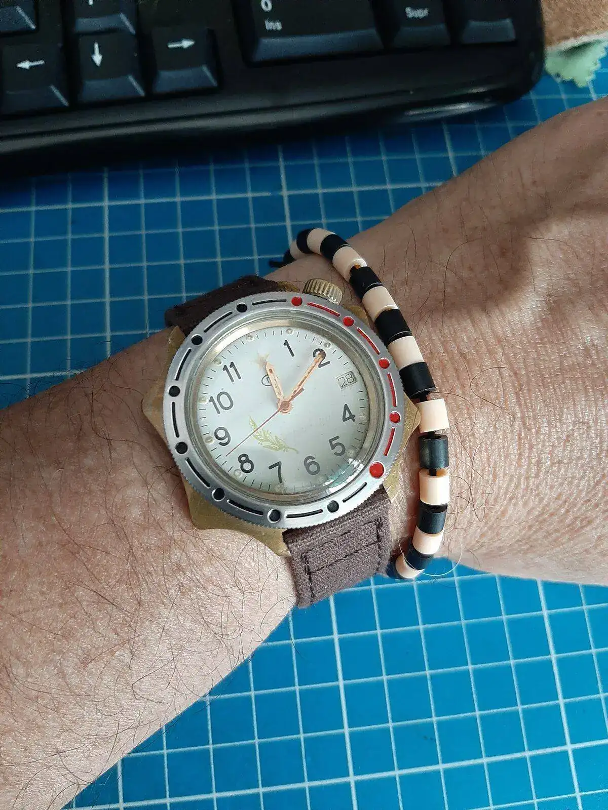 , con este rusito que compre para chatarrear, pero marcha como un campeon, asi que visto lo visto, se queda en la alineacion titular.Pues le queda muy bien. Por cierto, esas agujas me suena haberlas visto, te ha llegado hace poco, no?Hace un par de dias, el compañero Josue Gomez y el compañero Vania, mostraron una combinacion que me encanto, caja de laton"brasseado" y bisel de acero, y cual chino decidi copiar, perdon, "homenajear" la iniciativa.![]()
