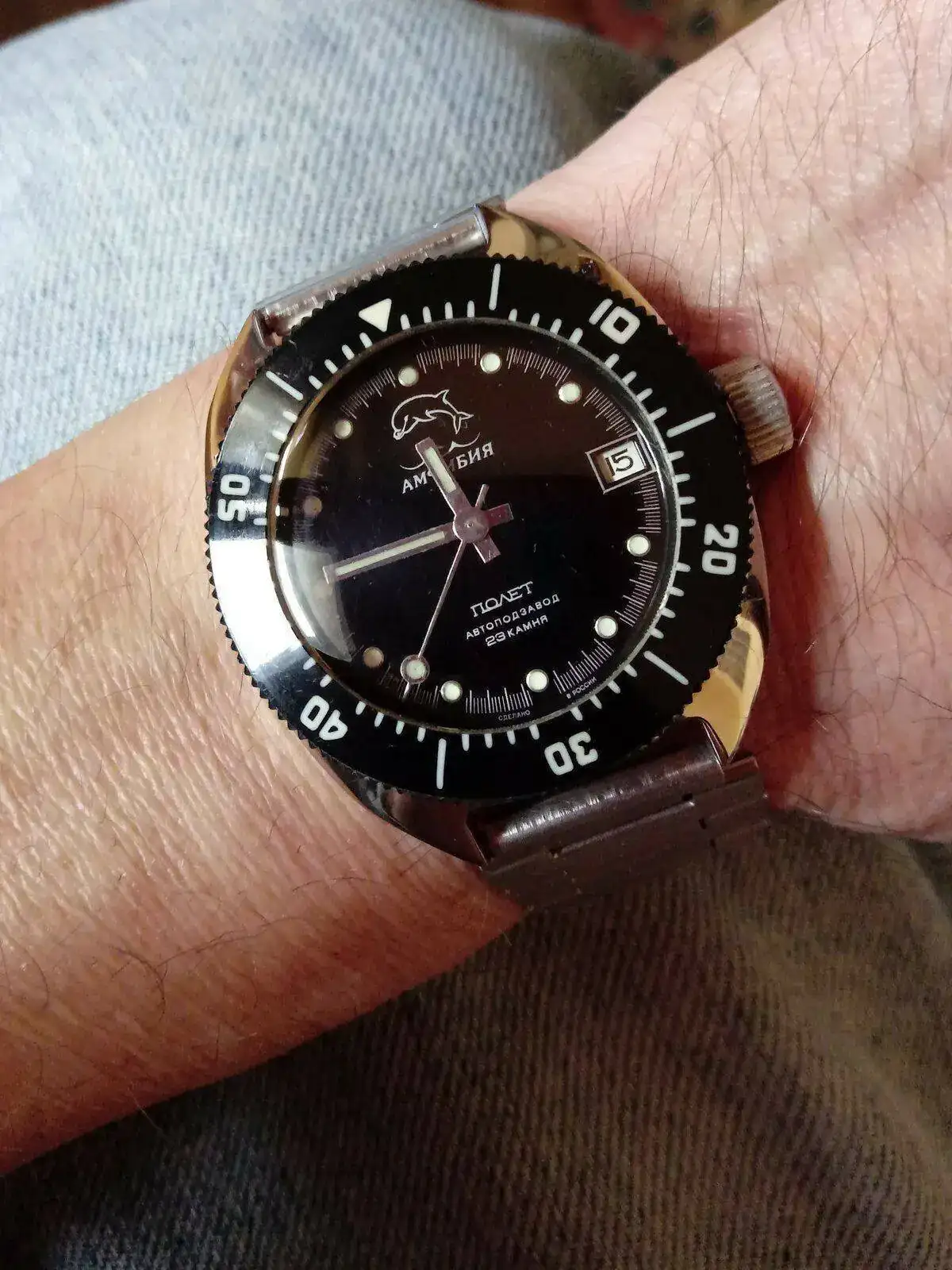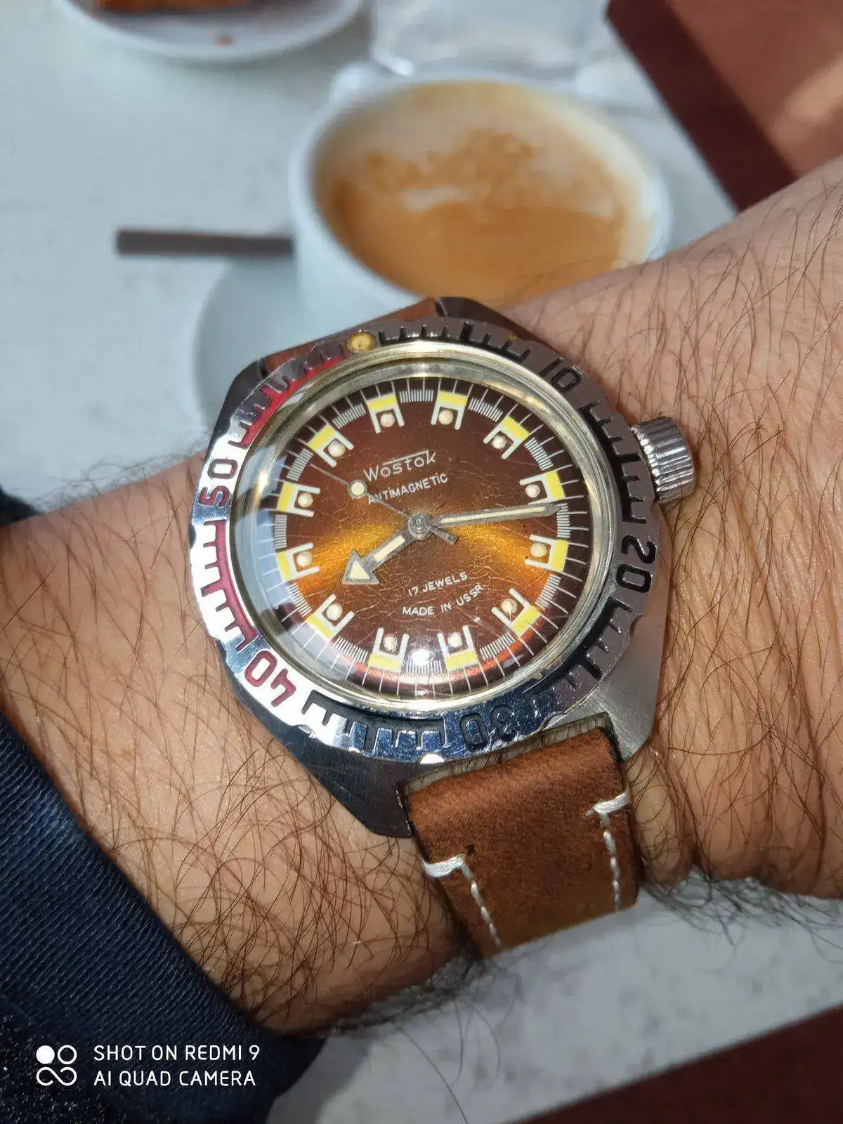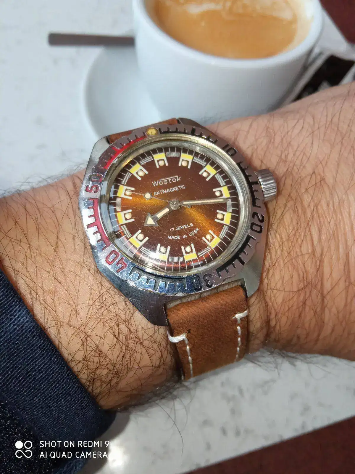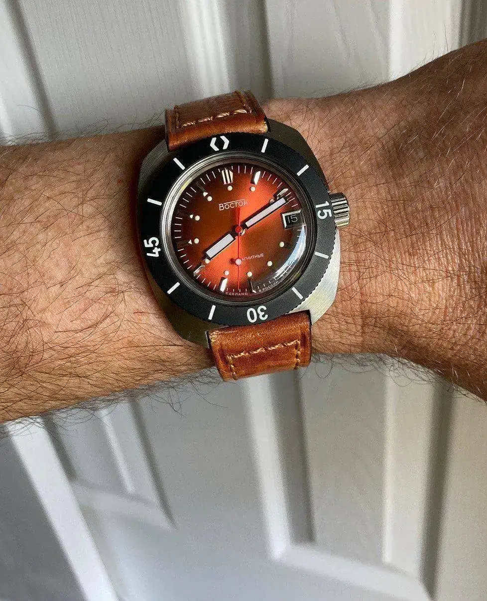 Nice icebreakerBreaking the ice today. The original strap was too small, in a Vostok leather for now. Not a fan of the red second hand, it will probably change to silver or black.